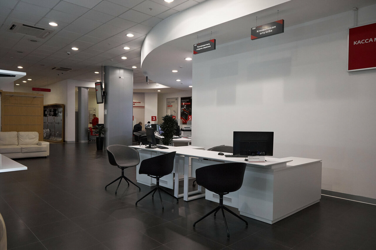 Типовой автоцентр. Хороший коллектив консультантов. Чисто. Есть кафе, можно пообедать. Нет окна в ремзону для клиентов. Трансляция ремзоны с камер на телевизор очень неудобная и низкокачественная, нужно бы обновить.