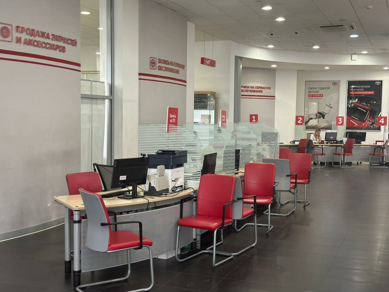 - Большое количество окон для приёма авто.