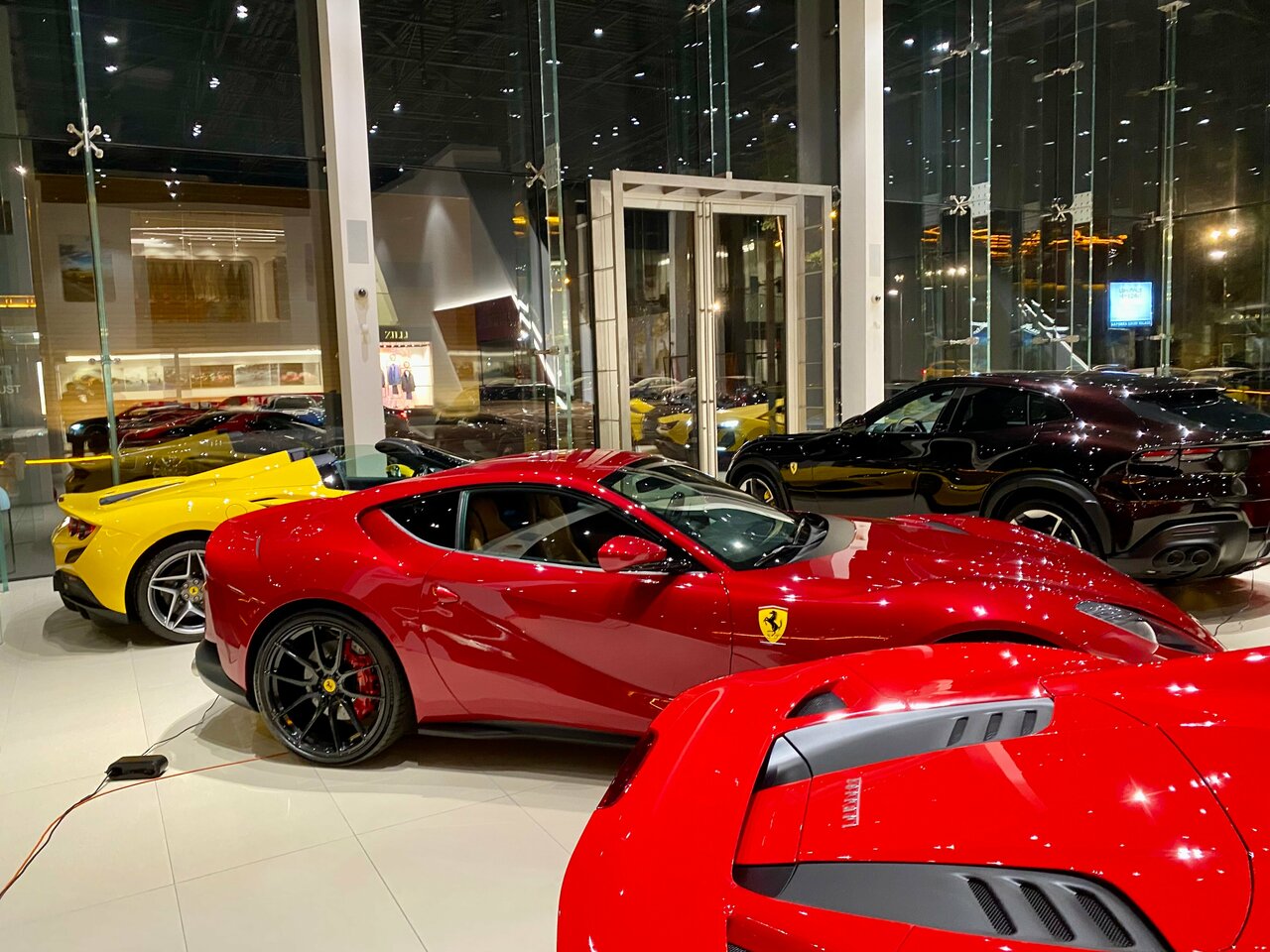 Крутое место, что уж тут говорить) Из плюсов: Крутые тачки и кстати не только Феррари Красные Феррари Из минусов: Цены на те самые крутые красные Феррари
