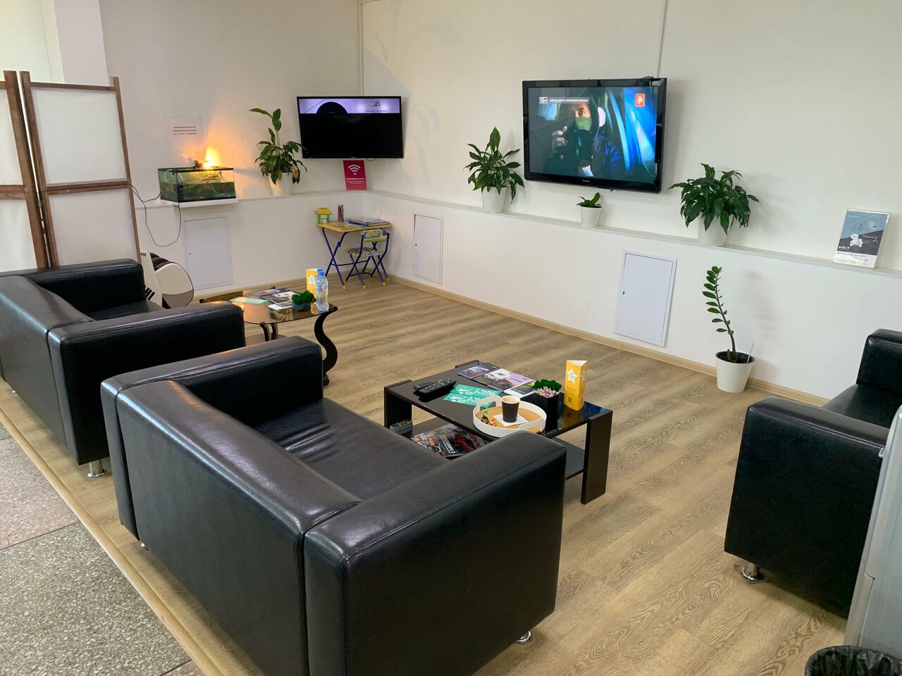 - Комфортная зона ожидания с напитками.