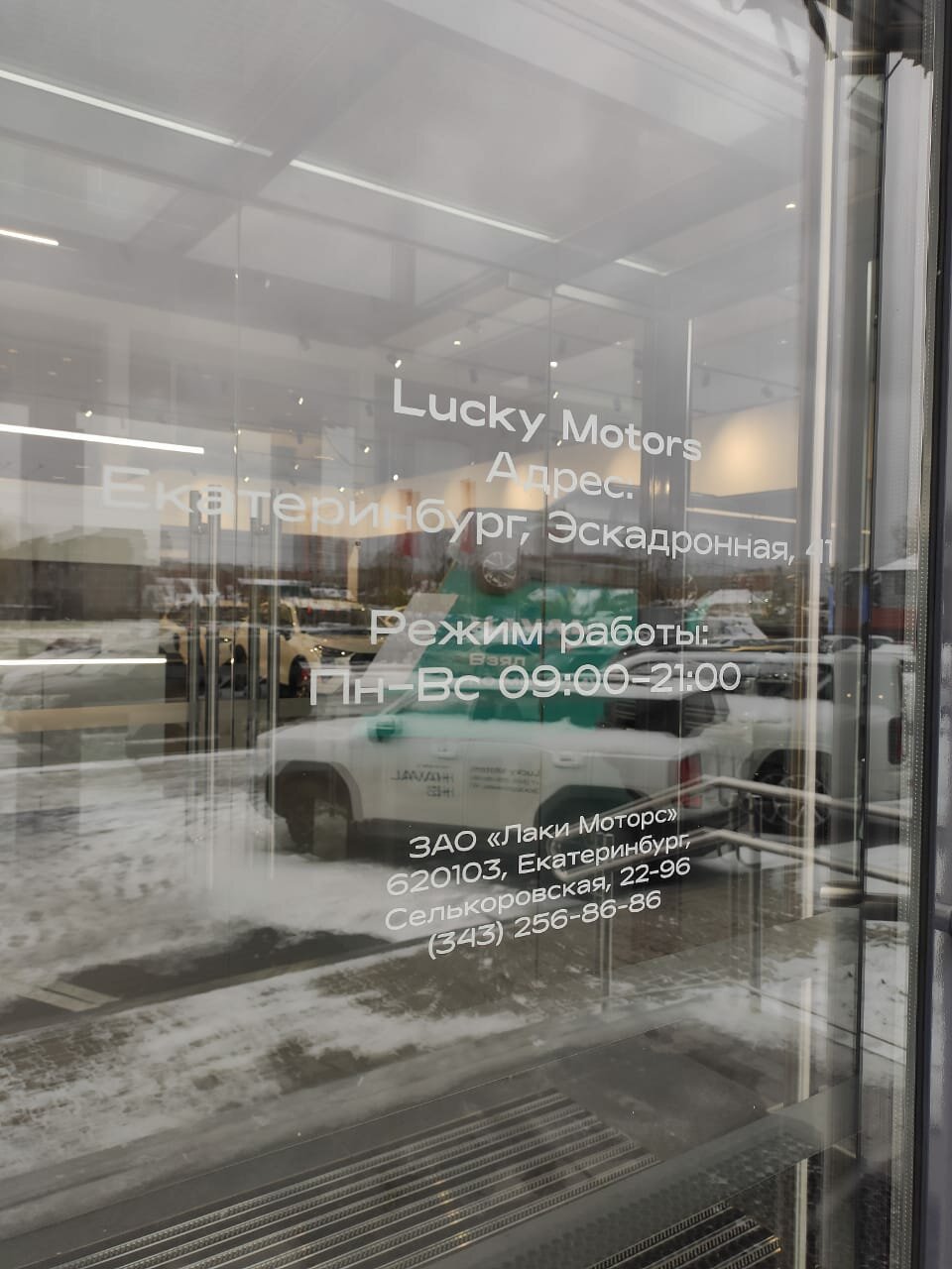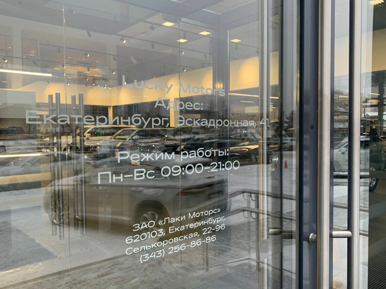 Режим работы: ежедневно с 09:00 до 21:00. Телефон для связи: +7 (343) 256-86-86. Подробная информация доступна на сайте: http://www.luckymotors.ru/.