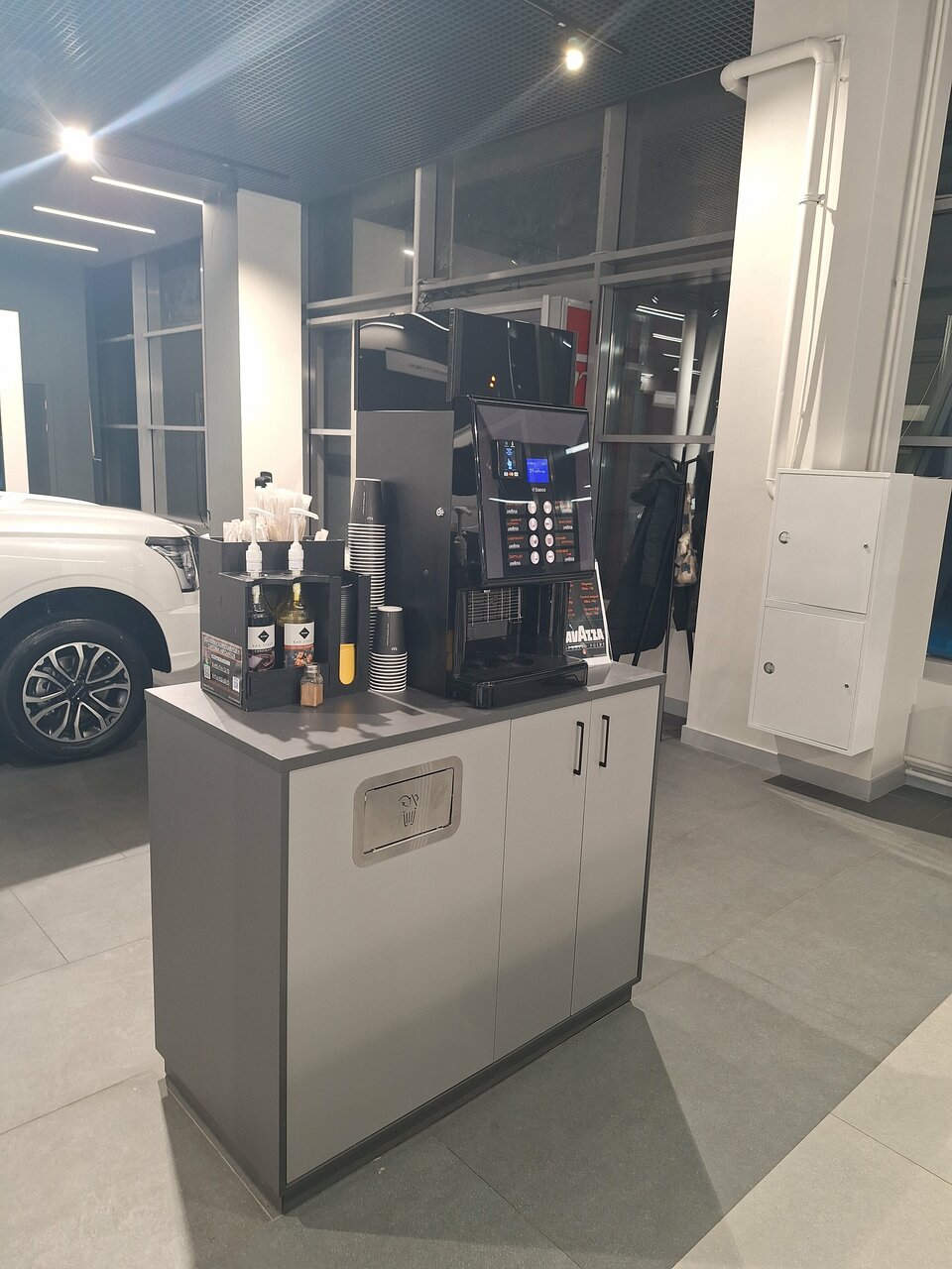 Для удобства покупателей доступен тест-драйв, а также сервисное обслуживание: замена масла, ремонт двигателя, АКПП, рулевых реек, покраска, тонировка, шумоизоляция, шиномонтаж, развал-схождение и мойка. В салоне есть кафе, где можно отдохнуть во время оформления документов.