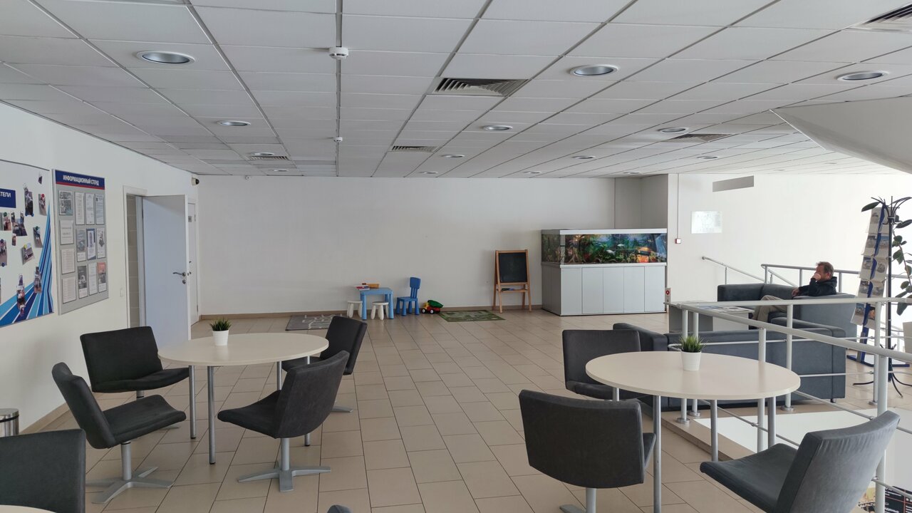 Очень хороший авто-салон , все удобства для посетителей , проходил ТО — ожидание автомобиля прошло 3 часа за это время мне не пришлось сидеть и смотреть в потолок , так как на 2 этаже есть клиентская зона , где можно посидеть на уютном диване посмотреть телевизор или вкусно покушать , вообще мне понравилась это место