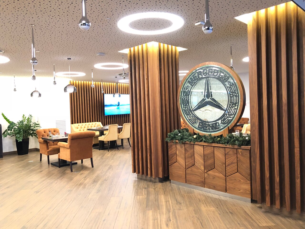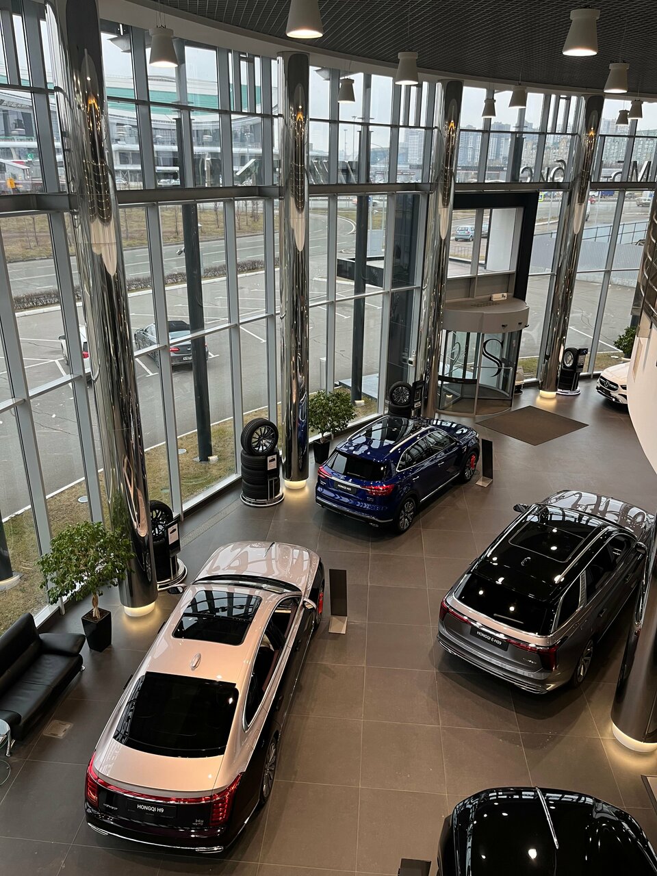 Удобная парковка, сам салон небольшой, но достаточно просторный. Есть небольшой ресторан на втором этаже, можно перекусить в спокойной атмосфере.