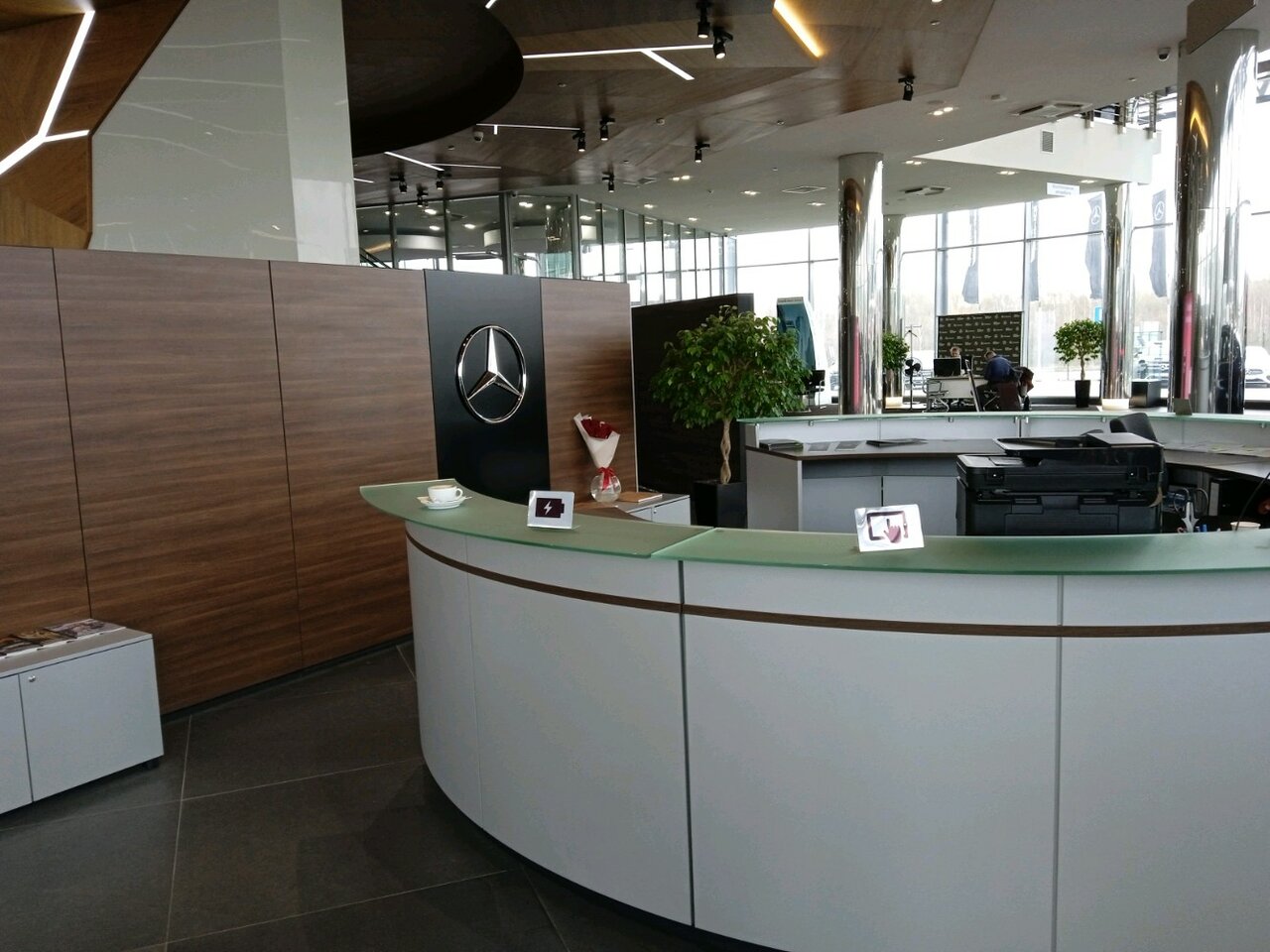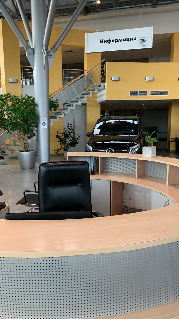 Постоянно обслуживаю служебный автомобиль. Персонал приветливый, интерьер достойный знаменитого бренда ‘Мерседес ‘. Удобное расположение центра (с точки зрения маршрута для меня). Пять баллов.