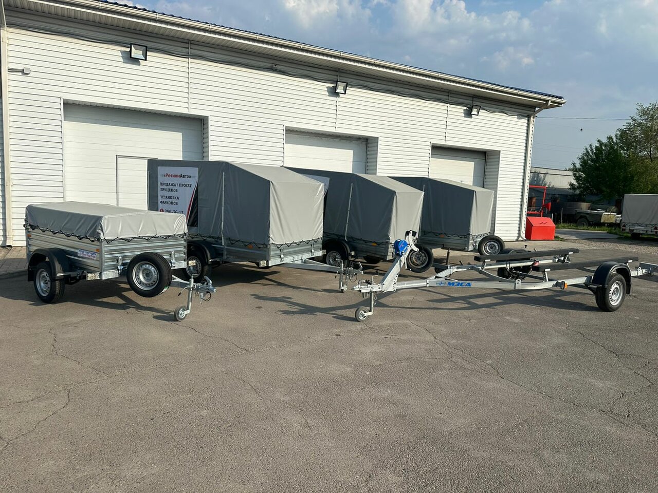 - Широкий выбор прицепов (с тентами и без).