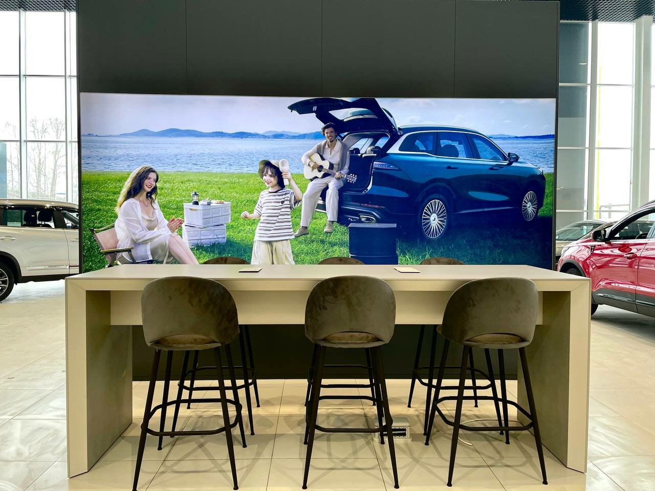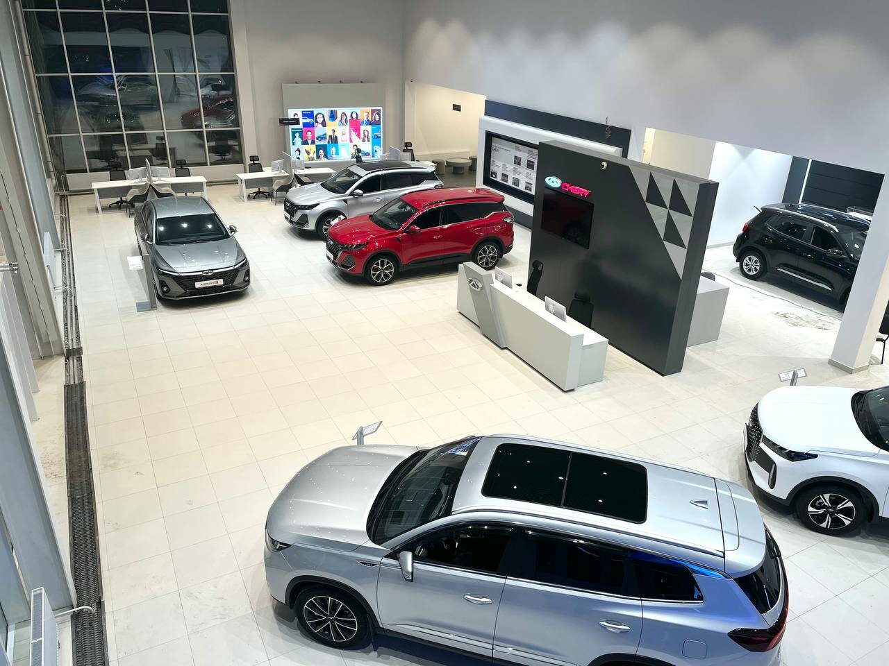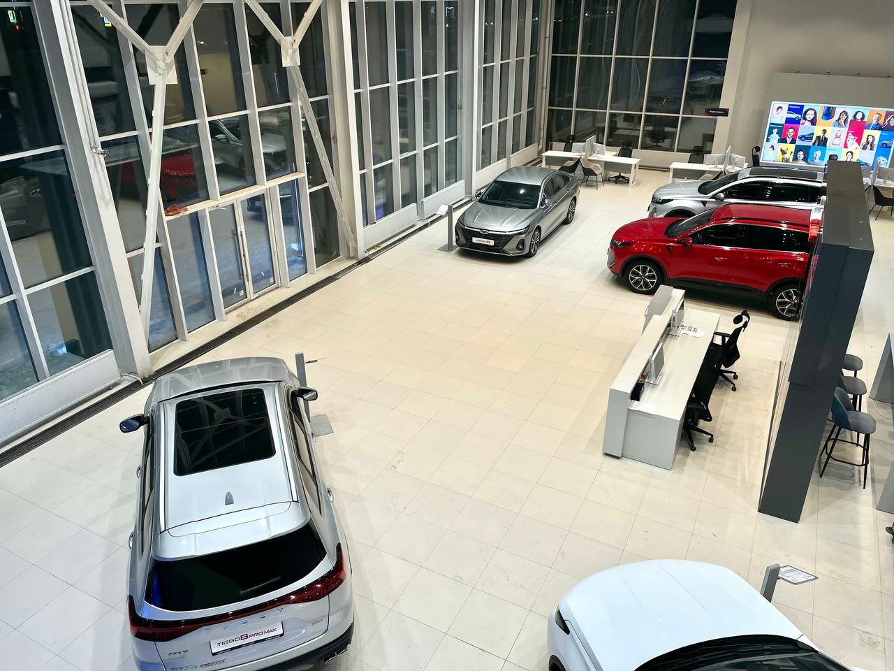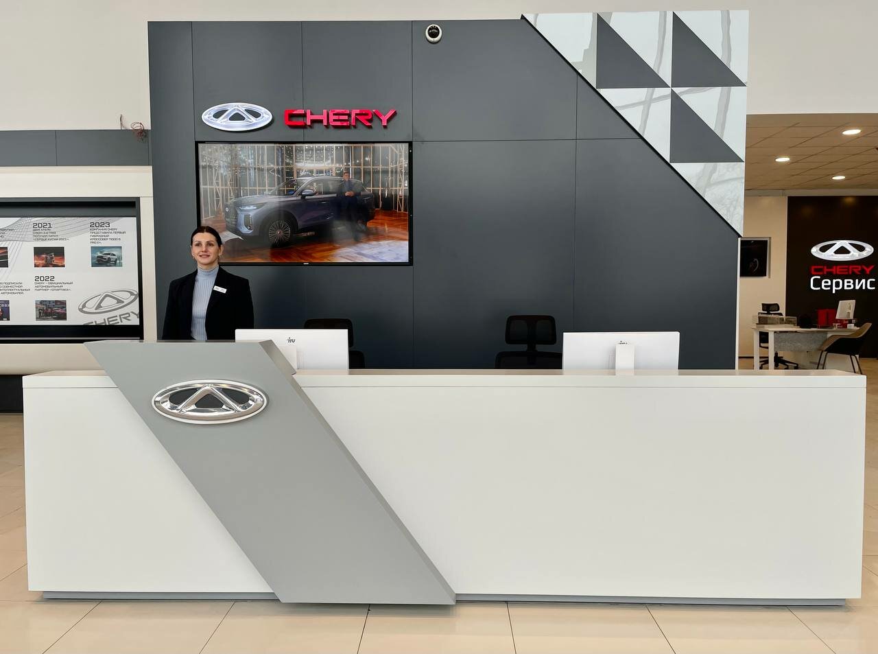Какой красивый, новый автосалон. Приобрели тигго 4 уже новую, угостили вкусным кофе и во время ожидания даже заказали пиццу нам, было приятно. Приедем теперь на ТО.
