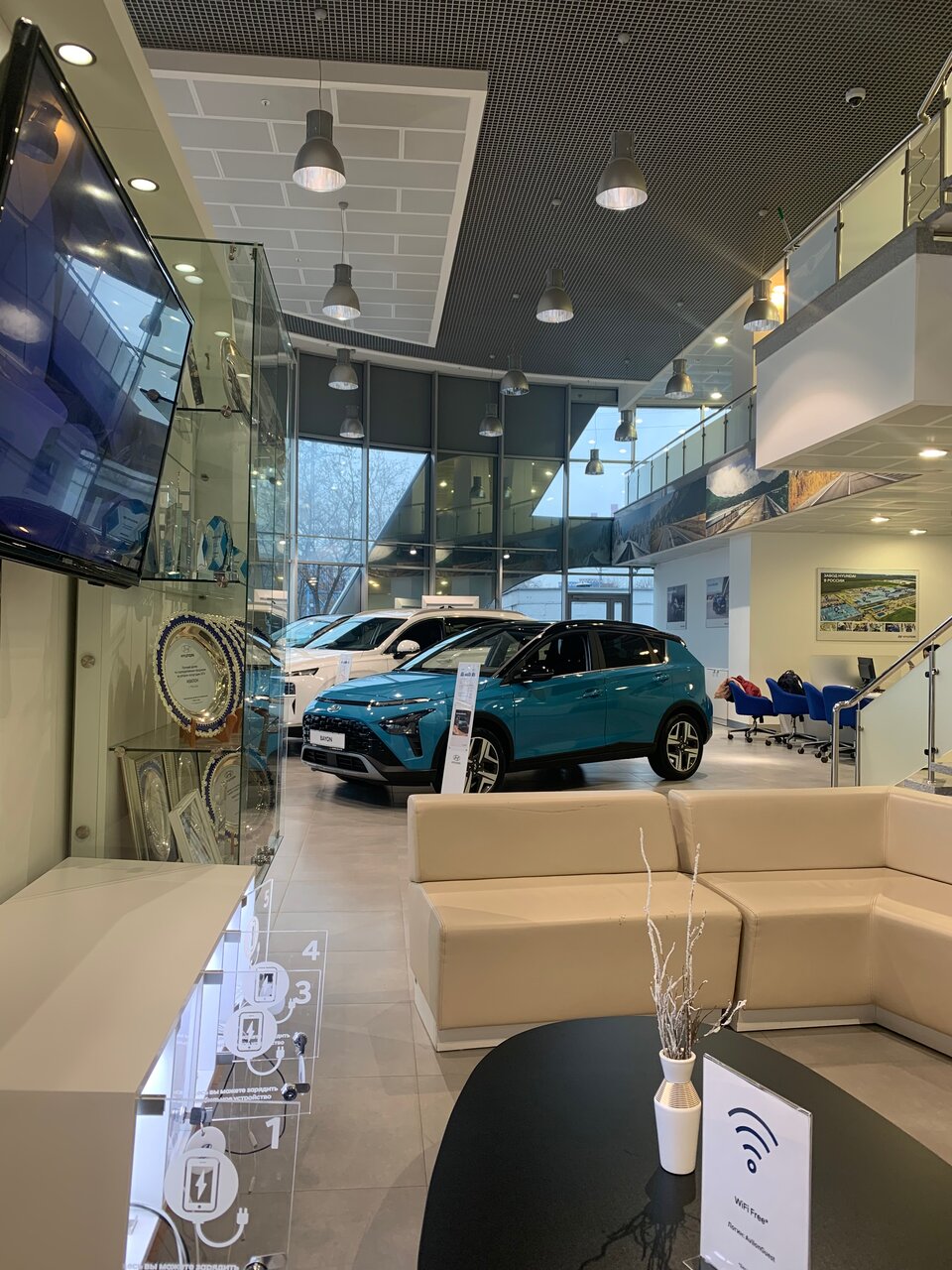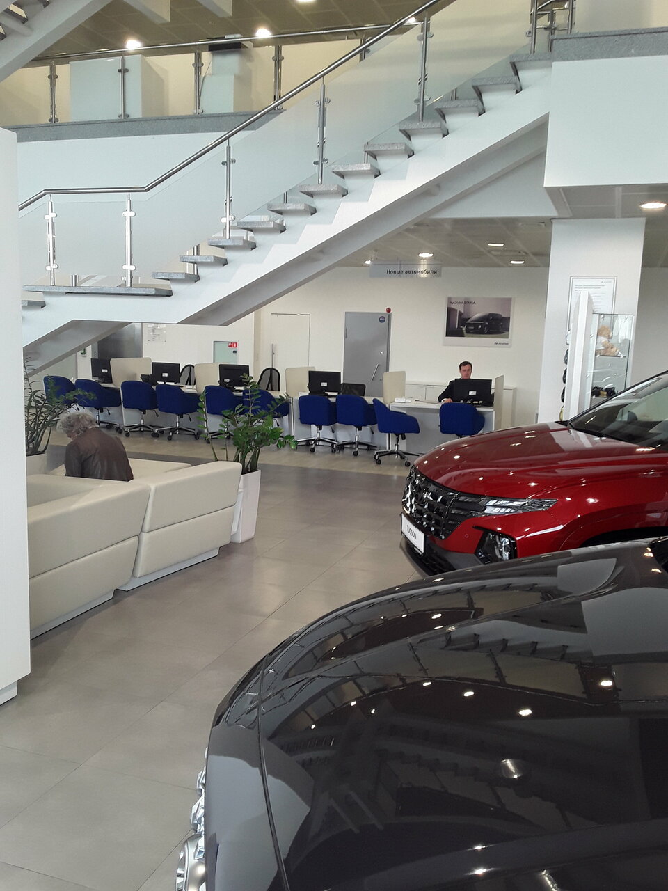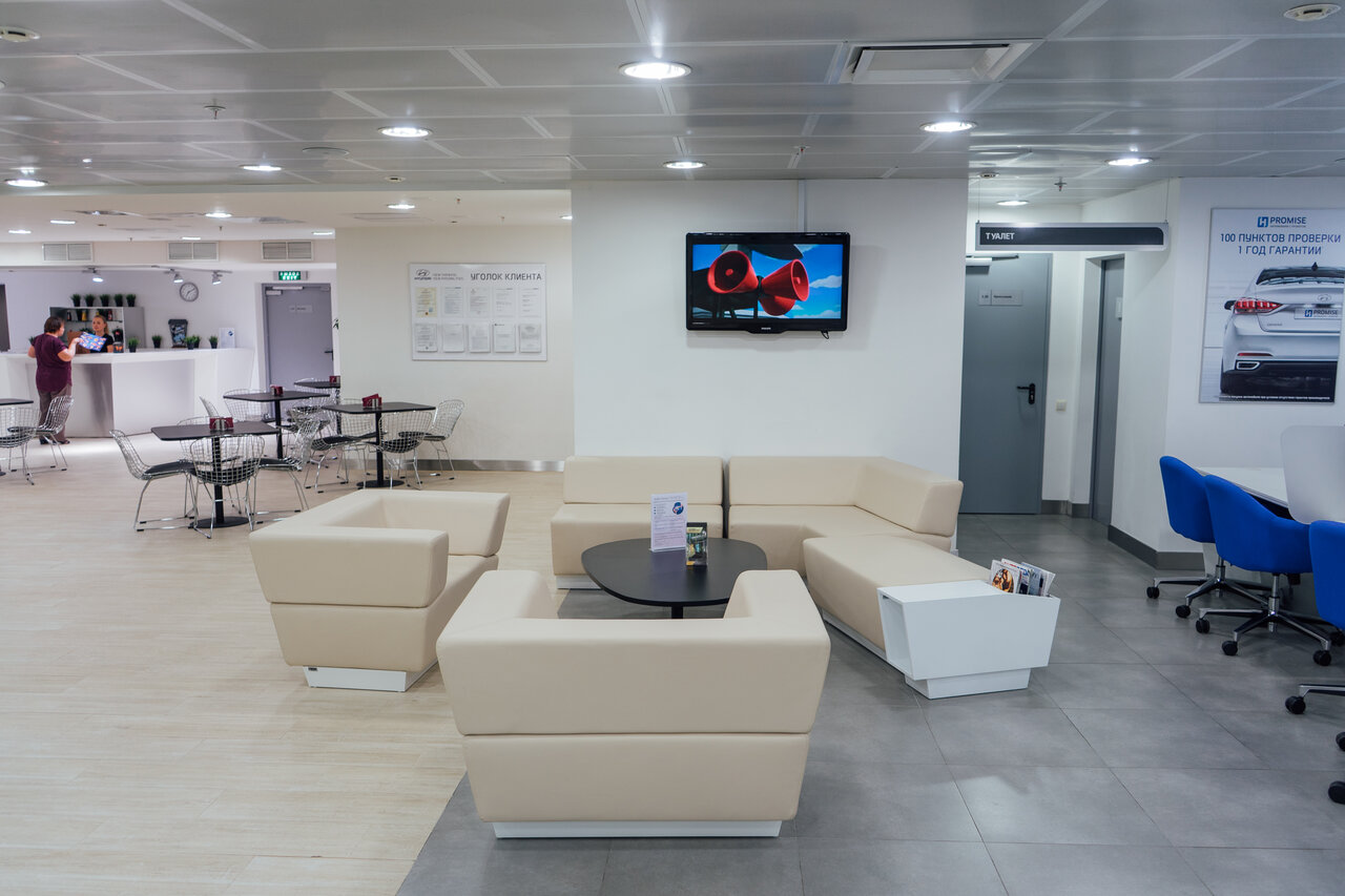 Современный красивый автосалон. При входе , администратор , при отсутствии свободного менеджера, не предлагает поисесть, и комфортно подождать, что снижает общую оценку.