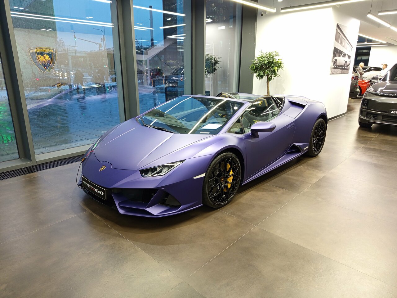Красивый салон с хорошими автомобилями. Мне нравятся Ламбы за то, что они обладают яркой индивидуальностью. В салоне много ярких машин очень ярких цветов. Посматриваю на фиолетовый Аурус — он как игрушечный и вызывает во мне самые положительные эмоции, ощущение счастья и радости. Как будто бы детский красочный мультфильм стал частью твоей жизни))