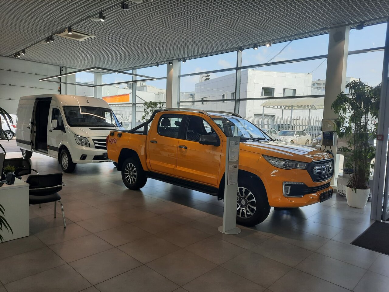 Небольшой салон. Машины расположены внутри. Сотрудники доброжелательные, смотрели Фотон пикап. Все про машину рассказали, по цене сориентировали, никакого обмана и накруток. Честно и по-делу! Покупка прошла максимально комфортно и быстро! Отличный салон, рекомендую.