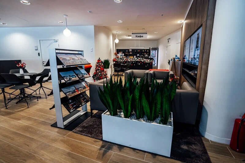 В салоне можно оформить автострахование (ОСАГО, КАСКО), поставить автомобиль на учёт и пройти техосмотр. Для удобства клиентов работают кафе, а также доступны тест-драйвы перед покупкой.
