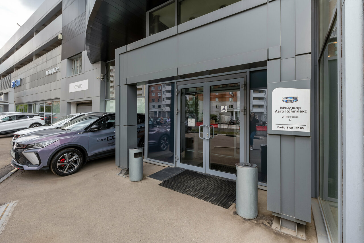 Автосалон Major Geely Дмитровка в Москве предлагает широкий выбор новых и подержанных автомобилей Geely с пробегом. Расположенный по адресу Псковская улица, 13, салон работает ежедневно с 08:00 до 21:00, обеспечивая клиентам комфортные условия для выбора и покупки автомобиля.