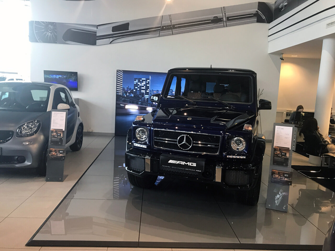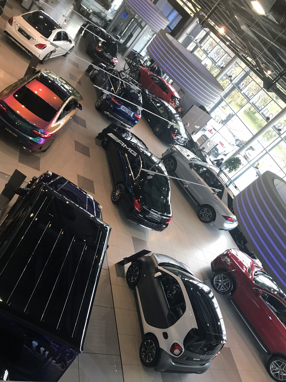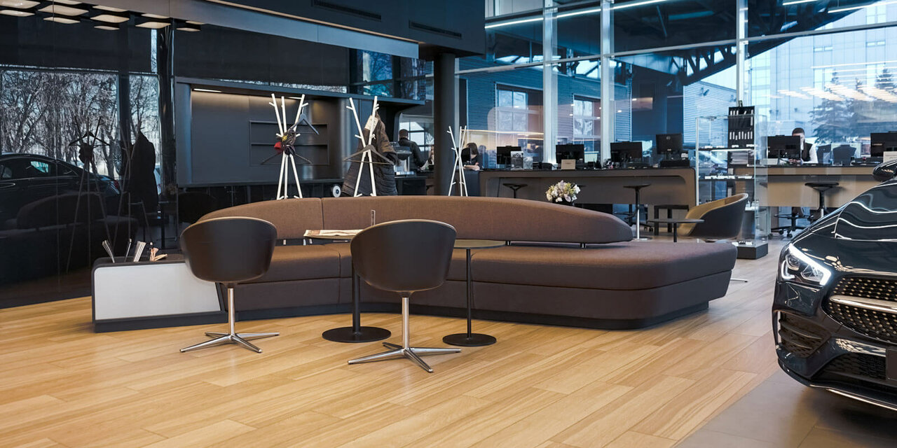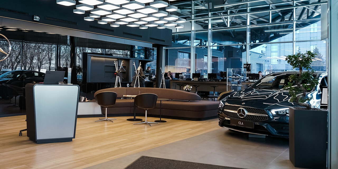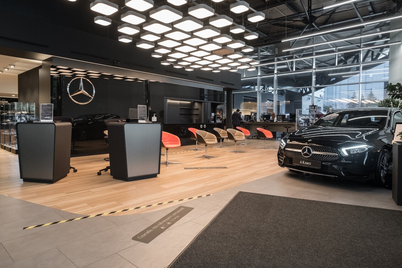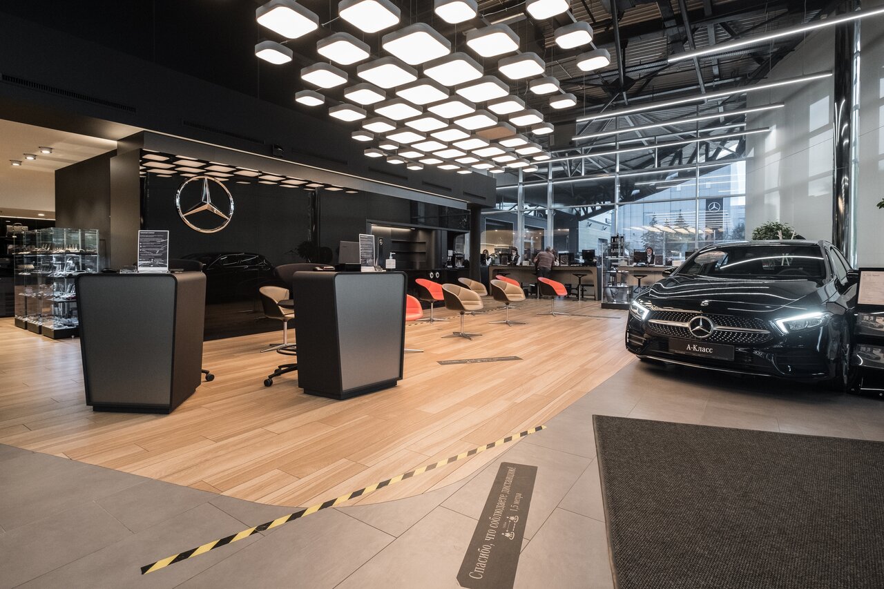 Салон как и все салоны мерседес наверное, все красиво и все светиться) по обслуживанию наверное так же как и везде, цены одинаковые, отношение к клиенту хорошее ( ну лично у меня) , обращался по гарантийному случаю все сделали, заказали запчасть пришла очень быстрое. Позвонили записали, приехал заменили. Как бы вопросов нет. Зону ожидания единственное можно подправить наверное, ждал 3 часа и от одних и тех же роликов уже голова кругом была, хотя бы где то обычный телевизор повесили бы и было как то не так грустно ожидать авто. Есть детская зона на 2 этаже рядом с кафе.