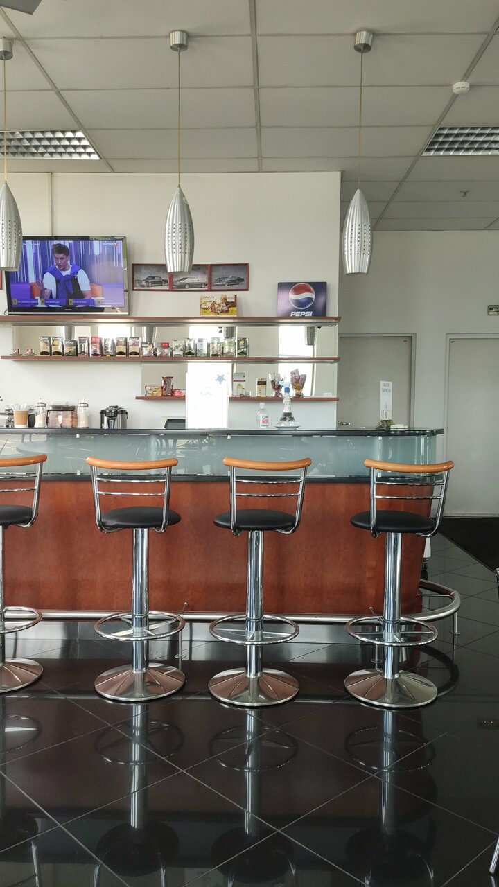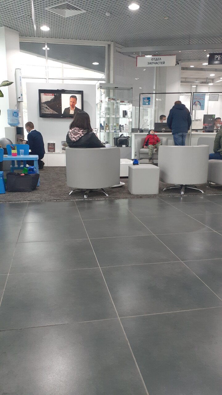 Чисто,просторно.Давки и очередей нет.Машины тихо стоят в зале на первом и на втором этажах.Есть все услуги по продаже,обмене и ТО авто.Небольшой кофетерий на втором этаже.на первом есть маленький детский уголок,кулер.Удобная большая парковка.