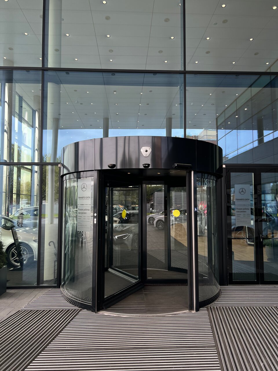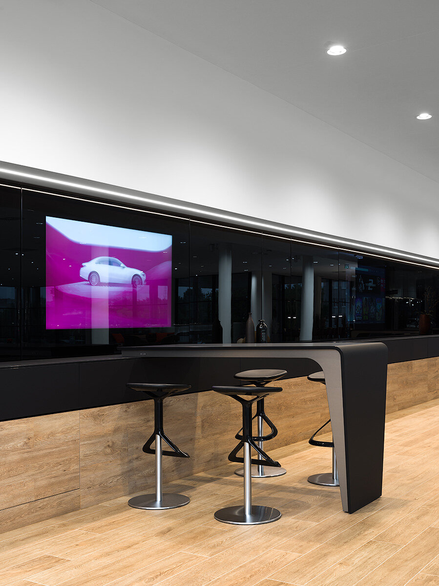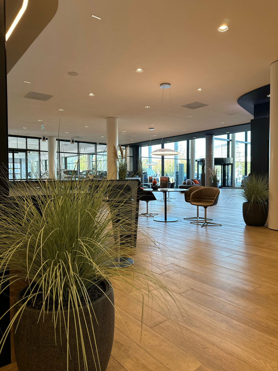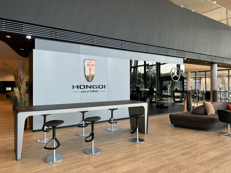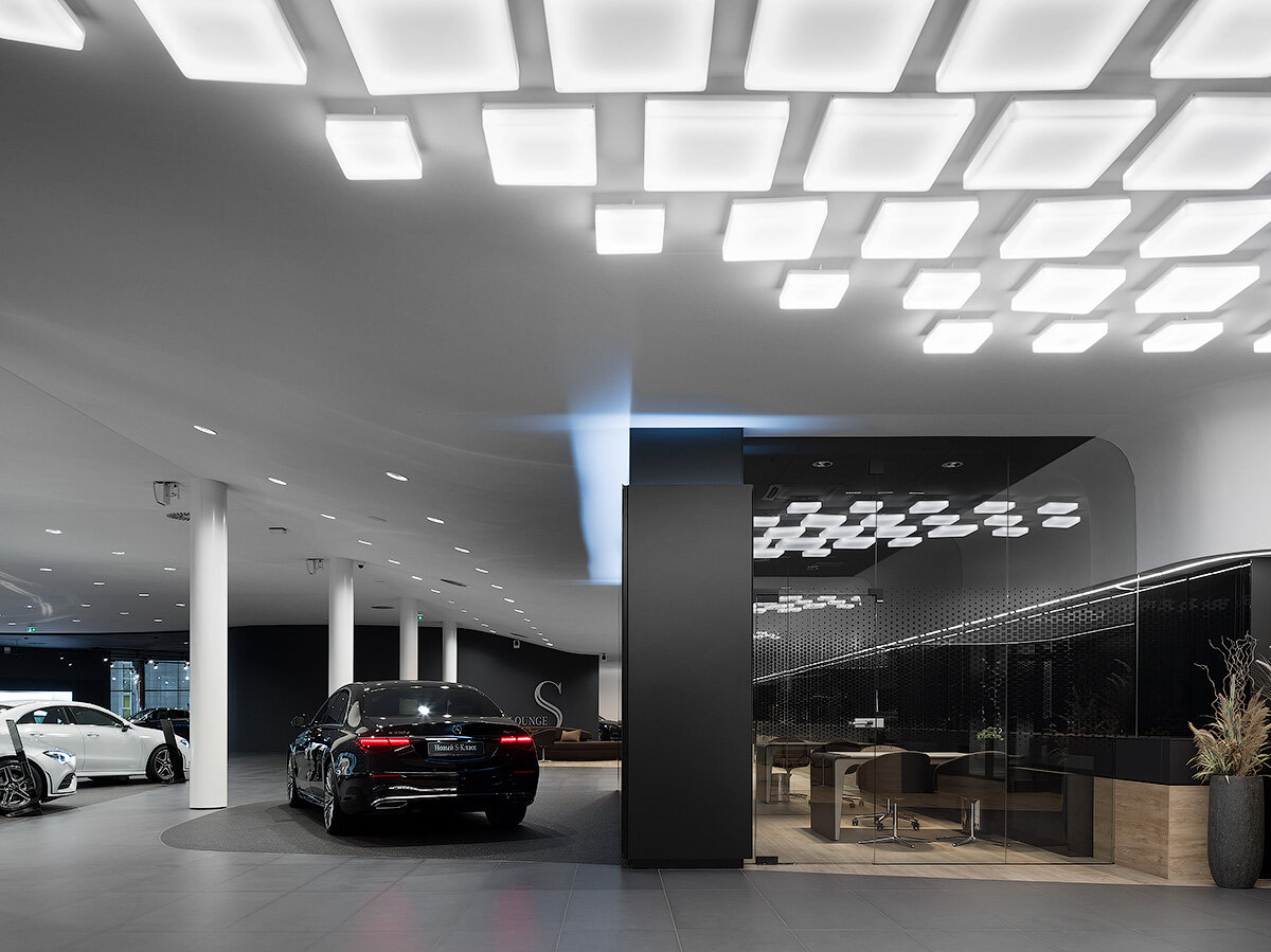 Красиво, все блестит, дорого — классический мерседес. Не очень понравилось что упор сделан больше в сторону красоты, а не удобства, явно можно было сделать больше приватных зон. За чай воду спасибо. Рабочие столы менеджеров убрали с глаз, пока не пойму лучше это или хуже. Панавто до сих пор хромает с обратной связью по задаваемые вопросам, к сожалению сервис не на заявдяемом уровне.