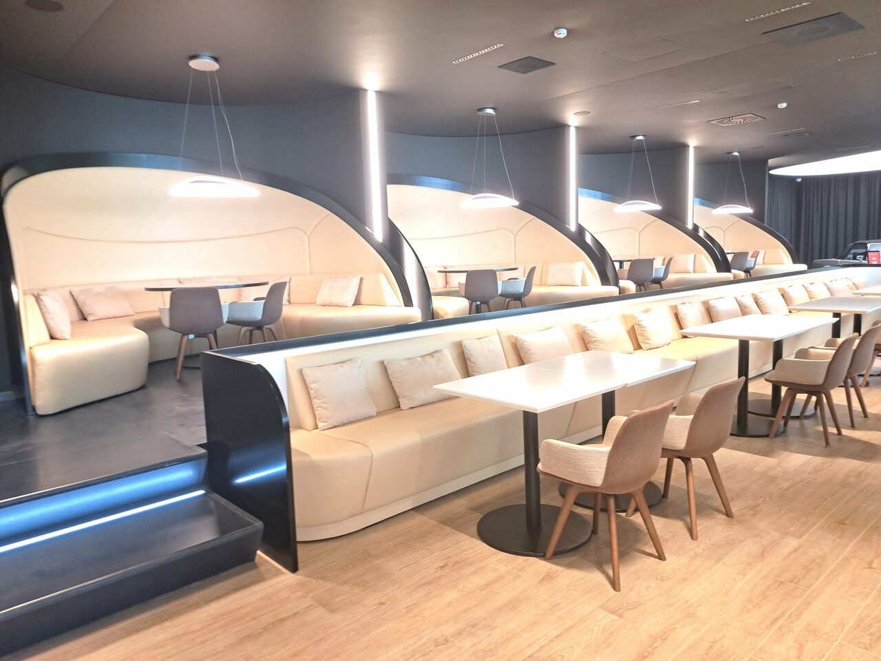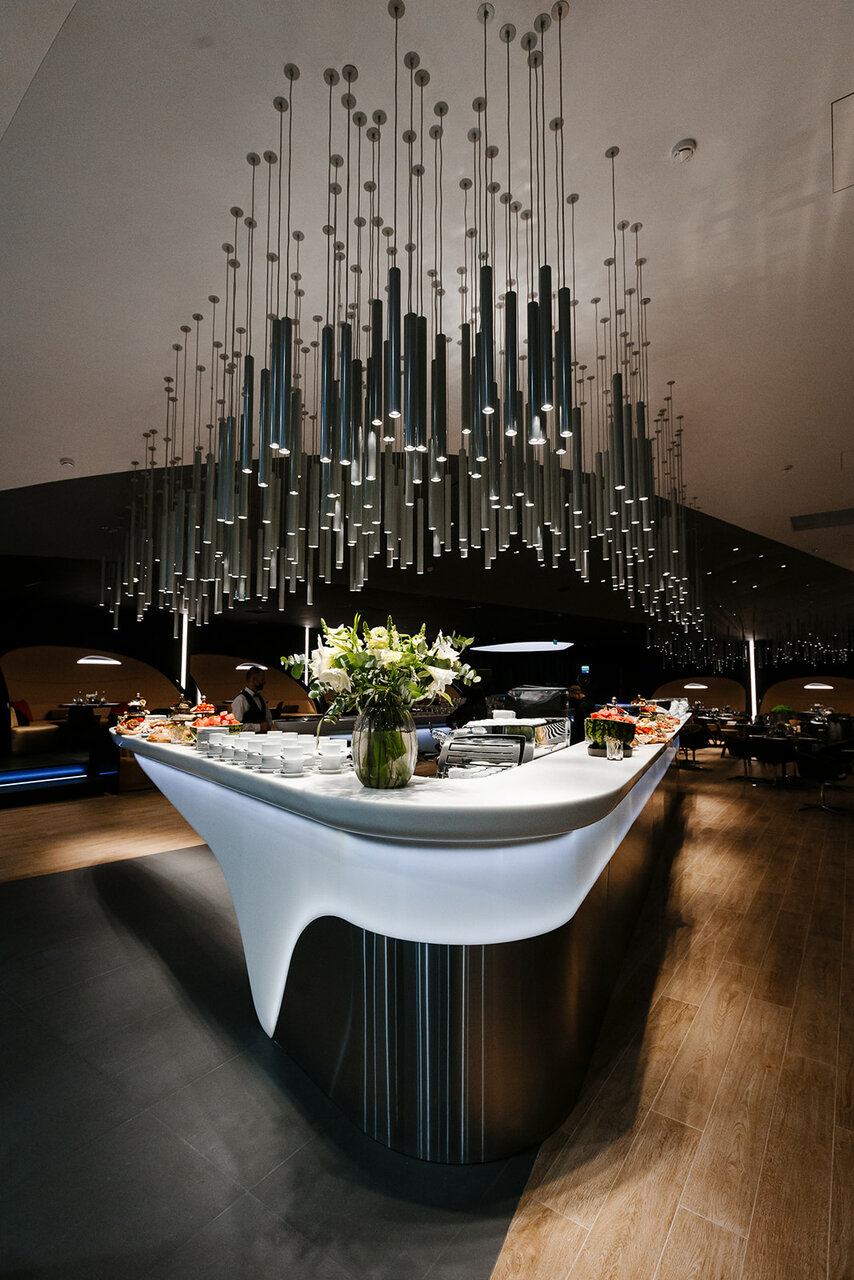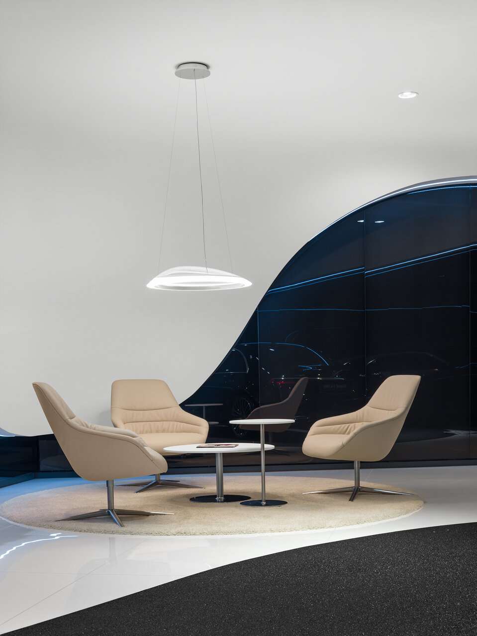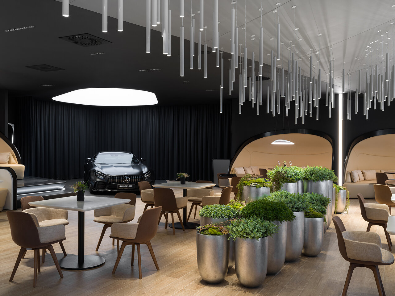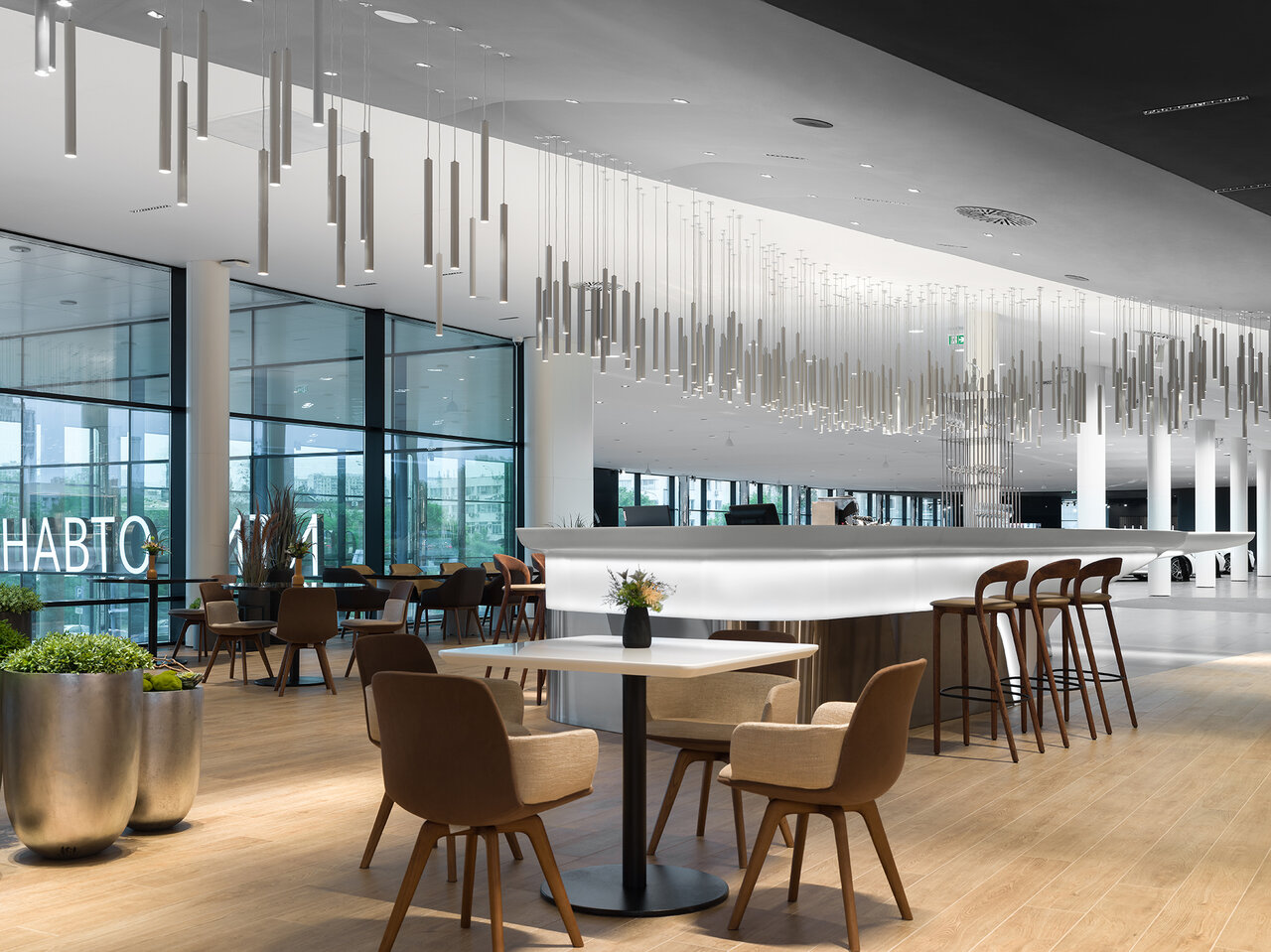 Красиво, все блестит, дорого — классический мерседес. Не очень понравилось что упор сделан больше в сторону красоты, а не удобства, явно можно было сделать больше приватных зон. За чай воду спасибо. Рабочие столы менеджеров убрали с глаз, пока не пойму лучше это или хуже. Панавто до сих пор хромает с обратной связью по задаваемые вопросам, к сожалению сервис не на заявдяемом уровне.