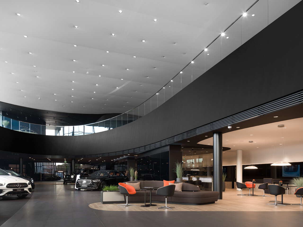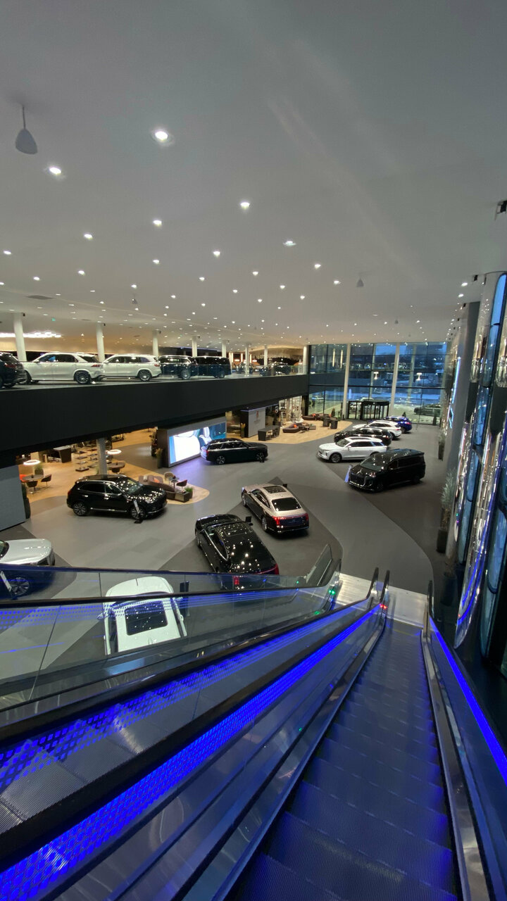 Огромное, красивое, современное пространство. Автосалон нового формата. Просто приятно приехать и посмотреть как бывает круто. Шоурум, сервис, парковка, кафе, бутик, ресторан.