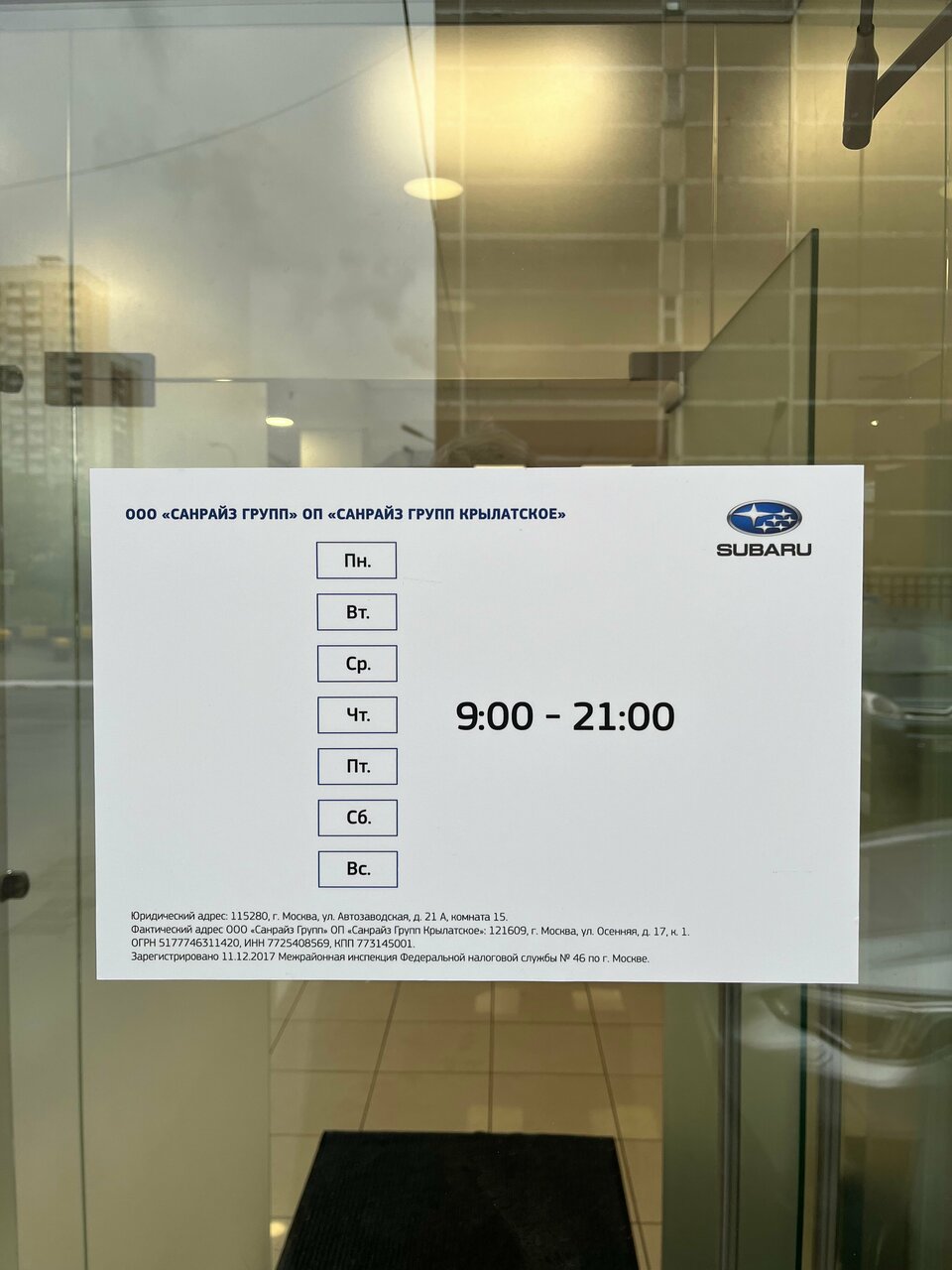 Информация о автосалоне Субару центр Крылатское актуализирована в октябре 2025 года: