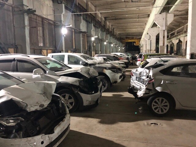 - Много автомобилей с серьезными повреждениями