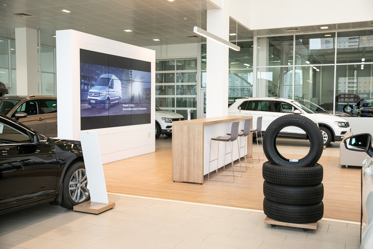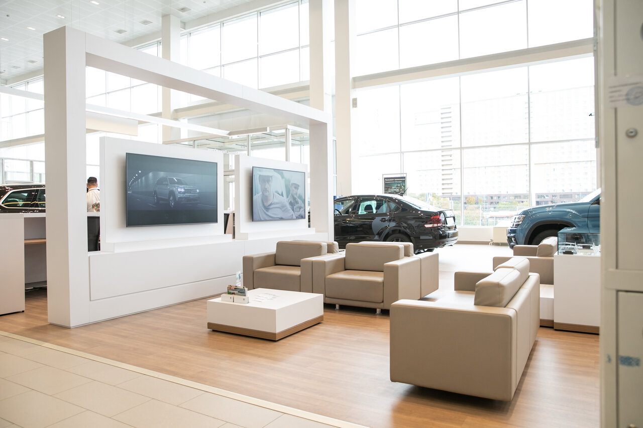 - Просторный автосалон с отделами страхования и кредитования.