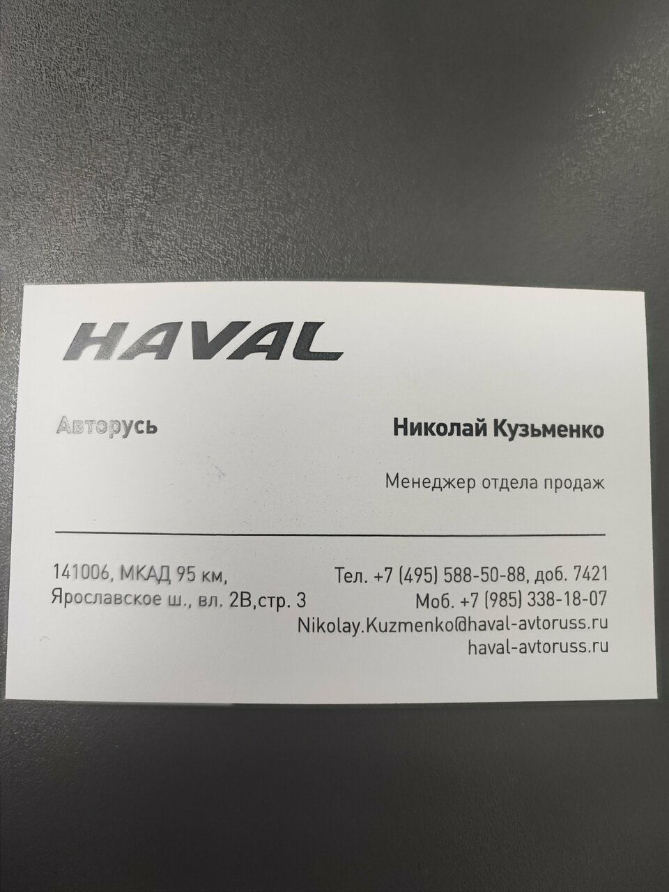Haval Авторусь гарантирует индивидуальный подход, качественное послепродажное обслуживание и полное сопровождение сделки. Связаться с салоном можно по телефону +7 (495) 085-53-04 или на официальном сайте https://avtoruss-haval.ru/.