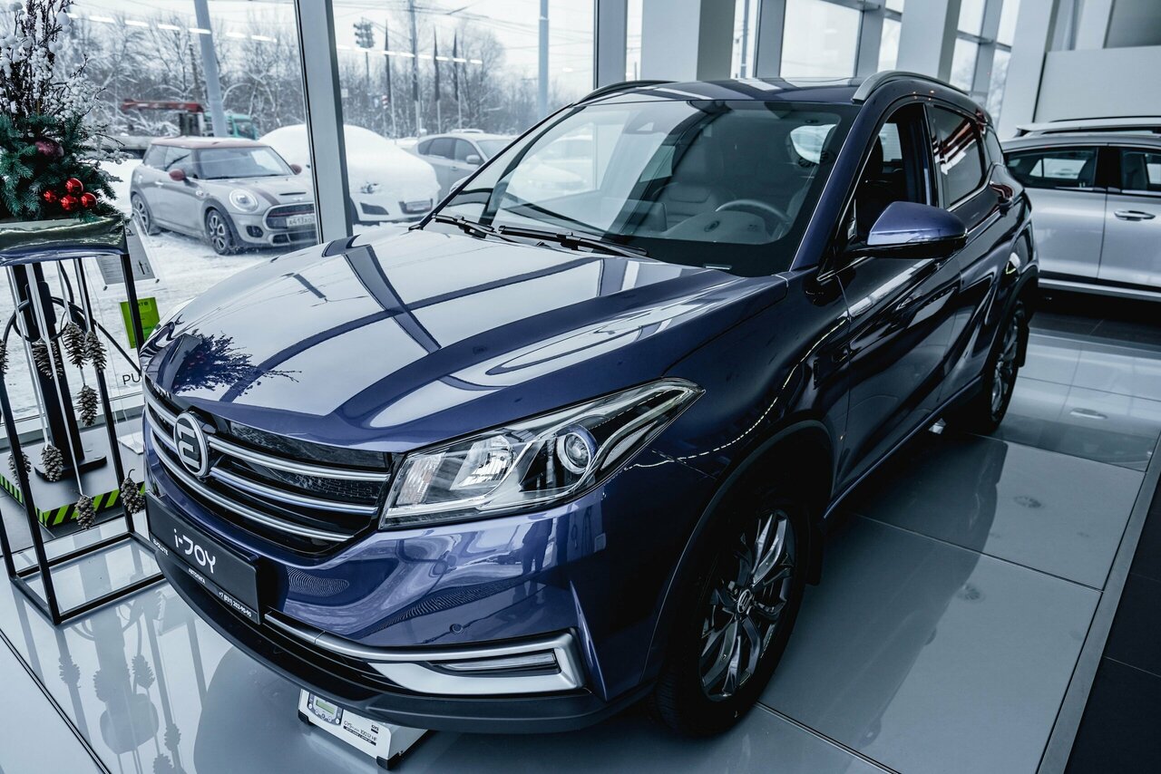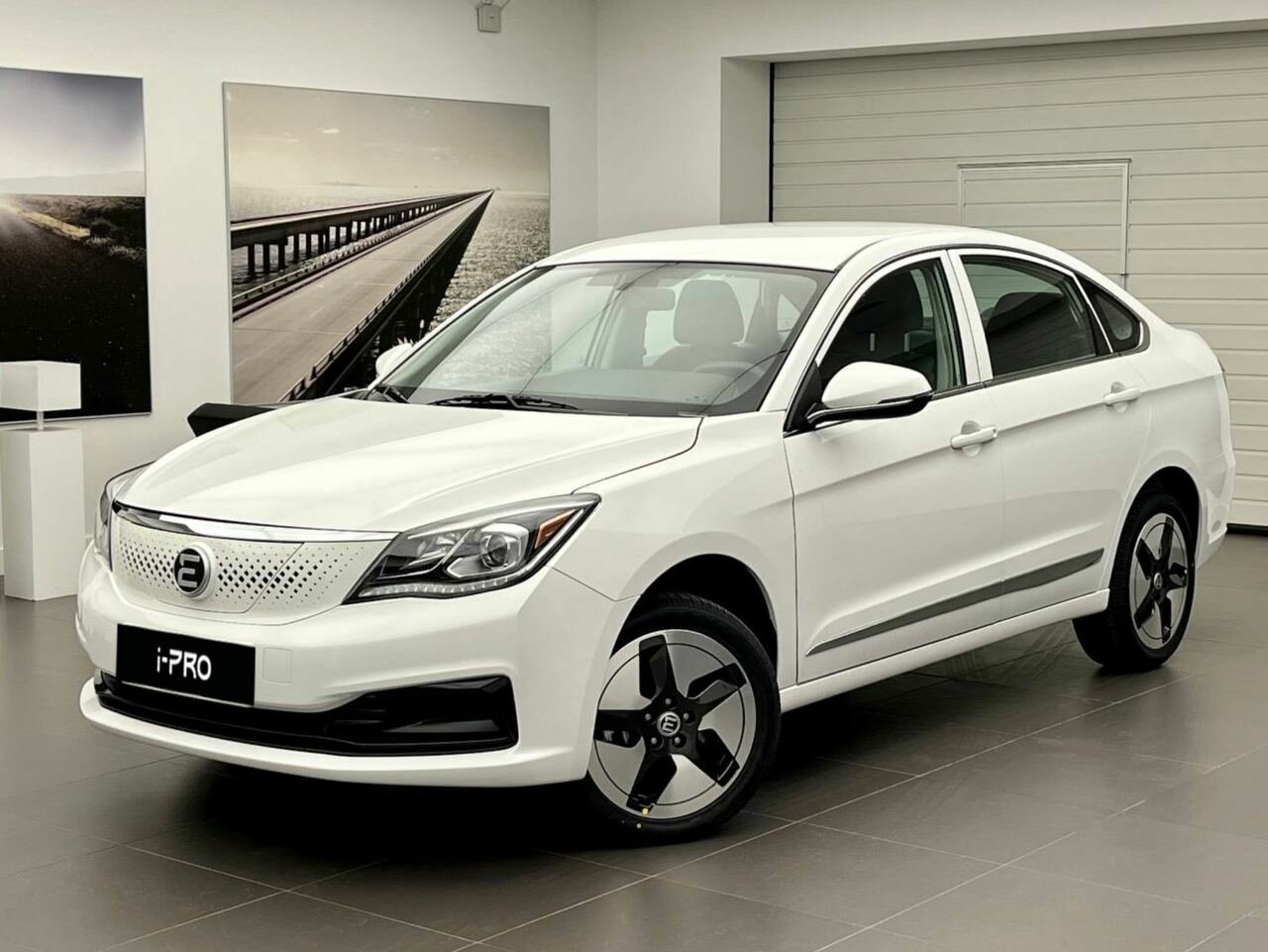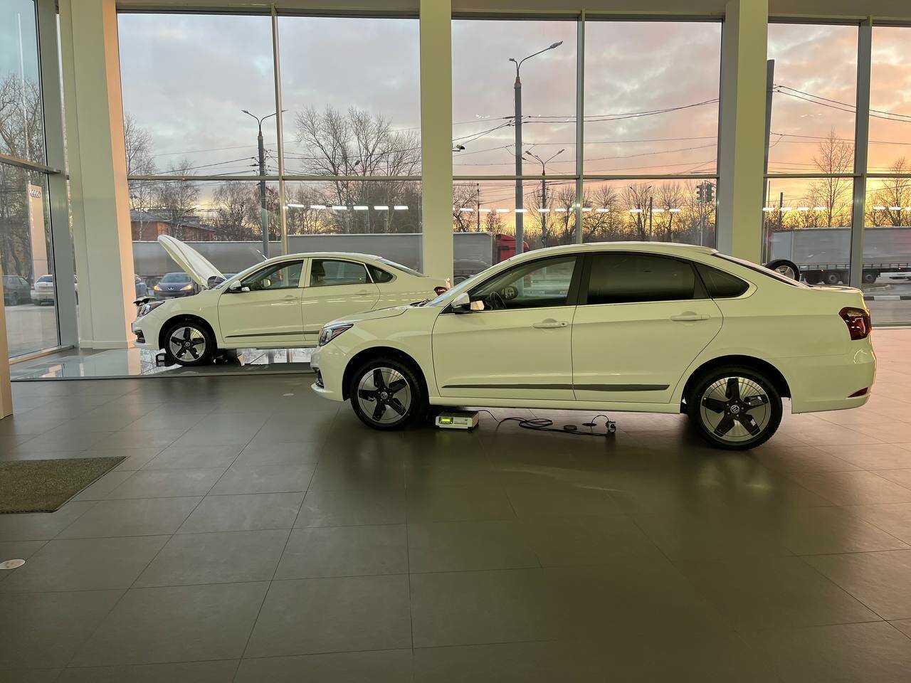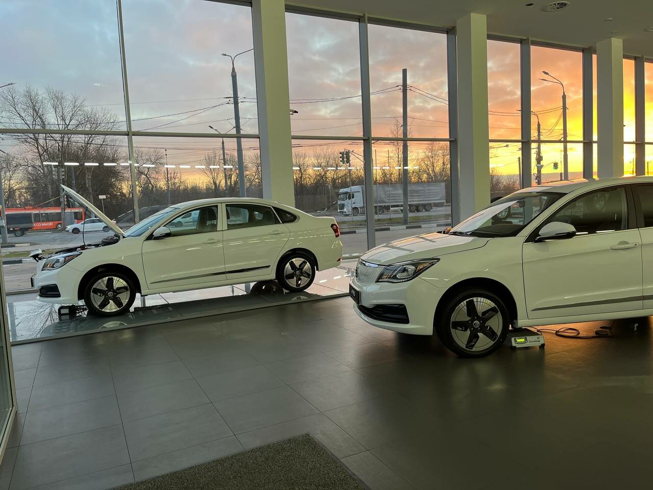 Автосалон Evolute в котором нет автомобилей. Одинокий седан скучает при входе. Надеюсь завод раскачается.