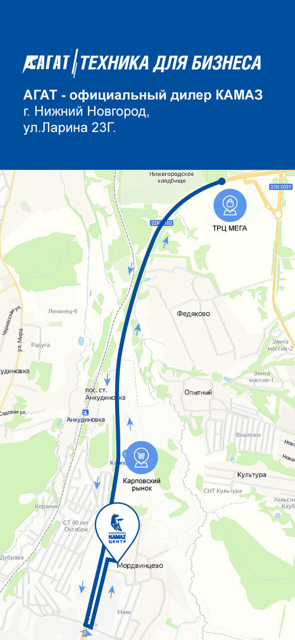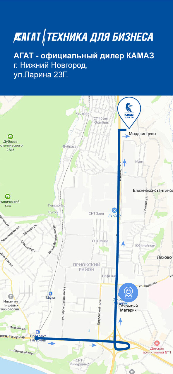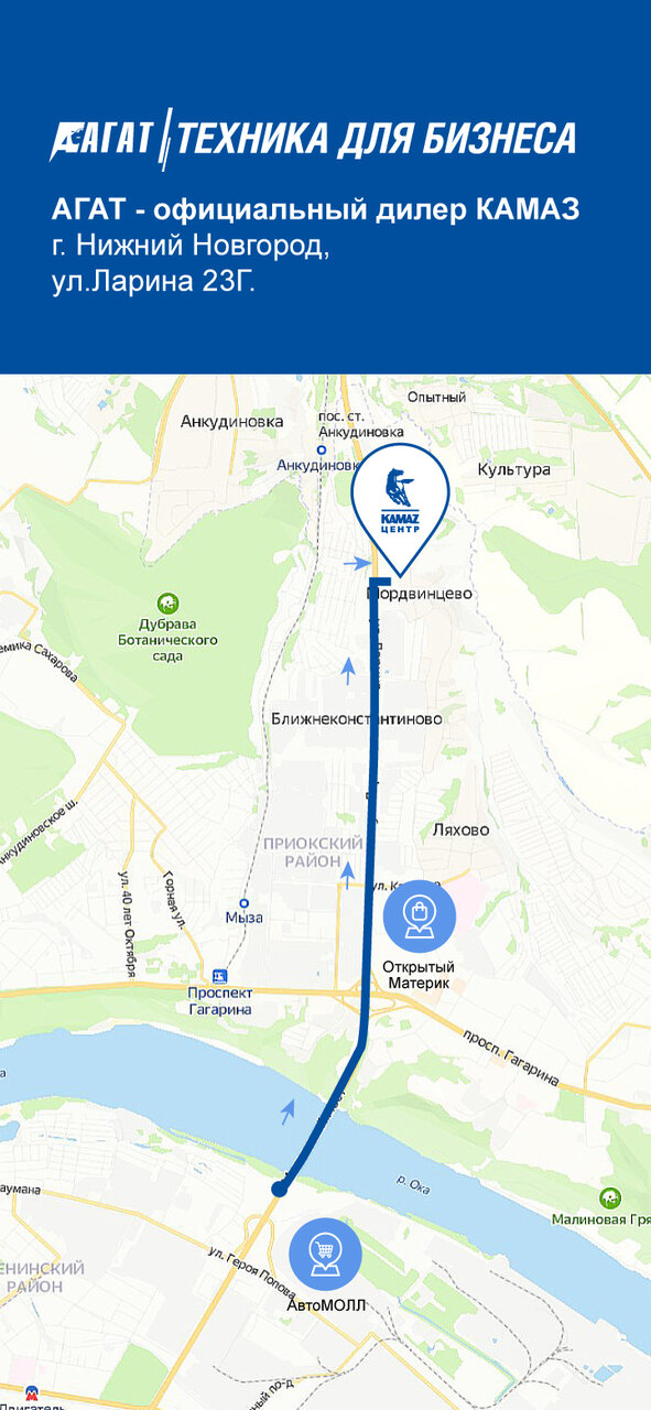 Узнайте, как доехать до салона Камаз Агат на Ларина на карте Нижнего НовгородаДостоинства и недостатки из отзывов