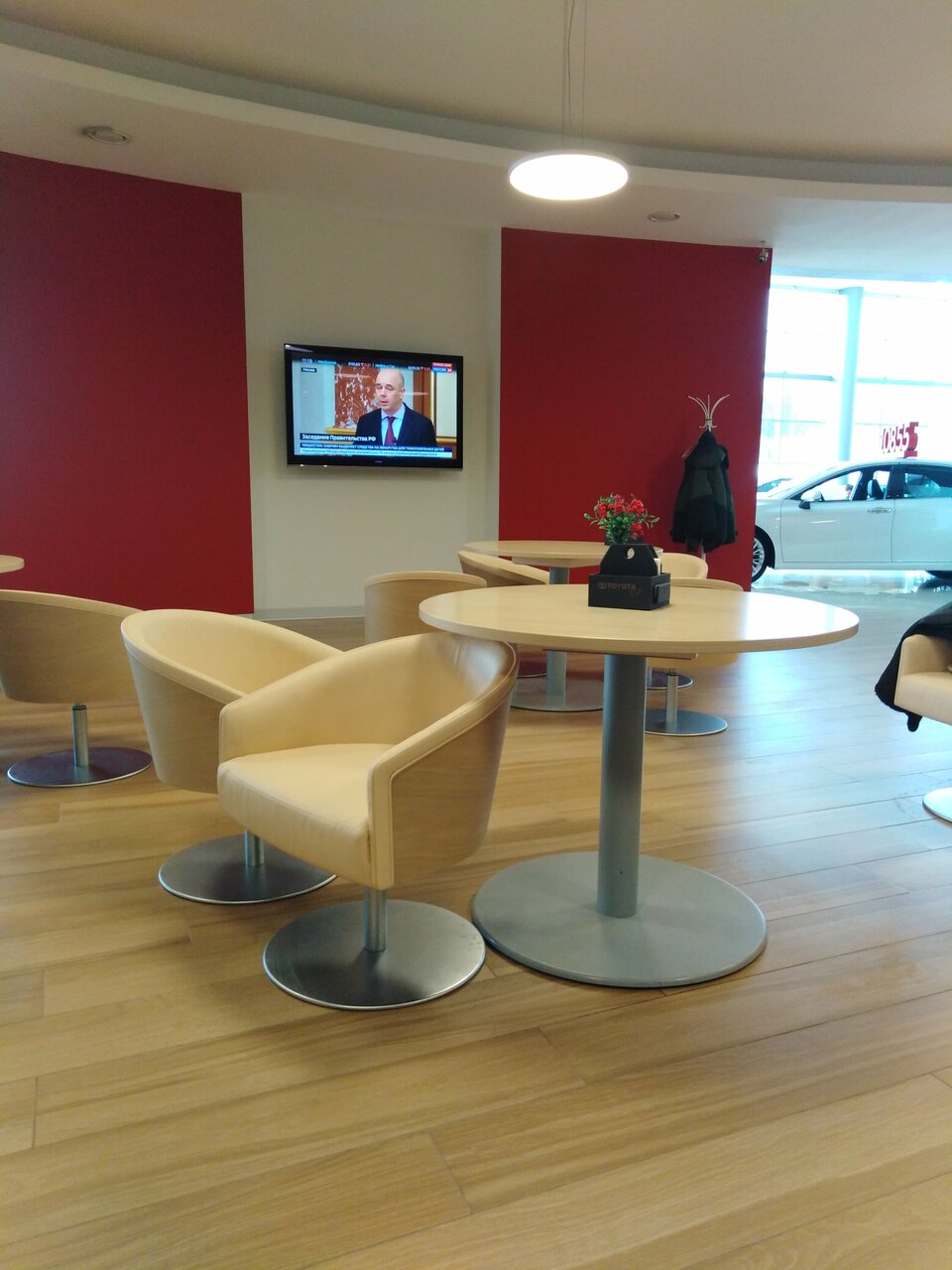 Хорошее место. Можно посмотреть машины и телевизор(если сможете его включить). Первые 2 часа охранник пасет, потом видимо привыкает и не обращает на вас внимание. Курилка в здании, удобно. Менеджеры не навязчивые, так что световой день можно провести здесь. ПС. На ночь выгоняют.