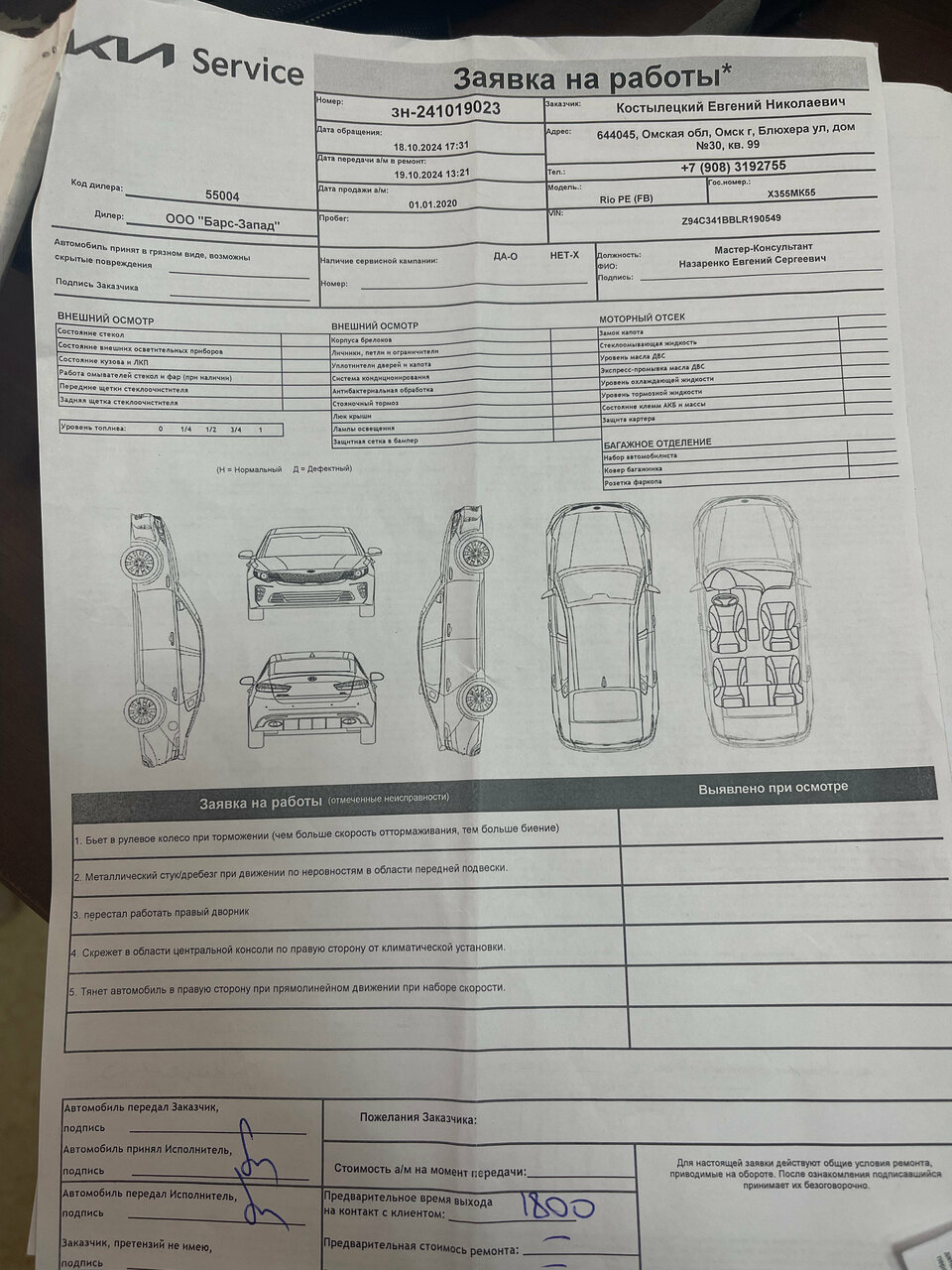 - Подготовка автомобиля к выдаче.