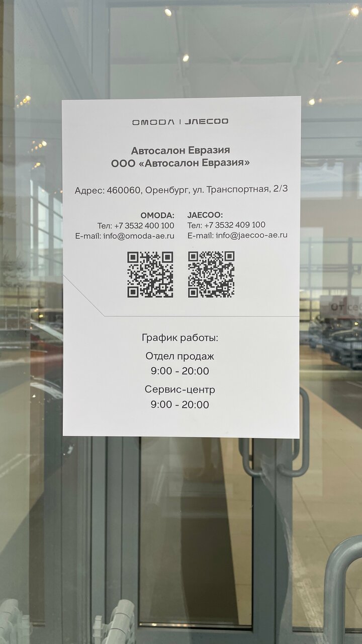Информация о автосалоне Jaecoo Евразия актуализирована в ноябре 2025 года: