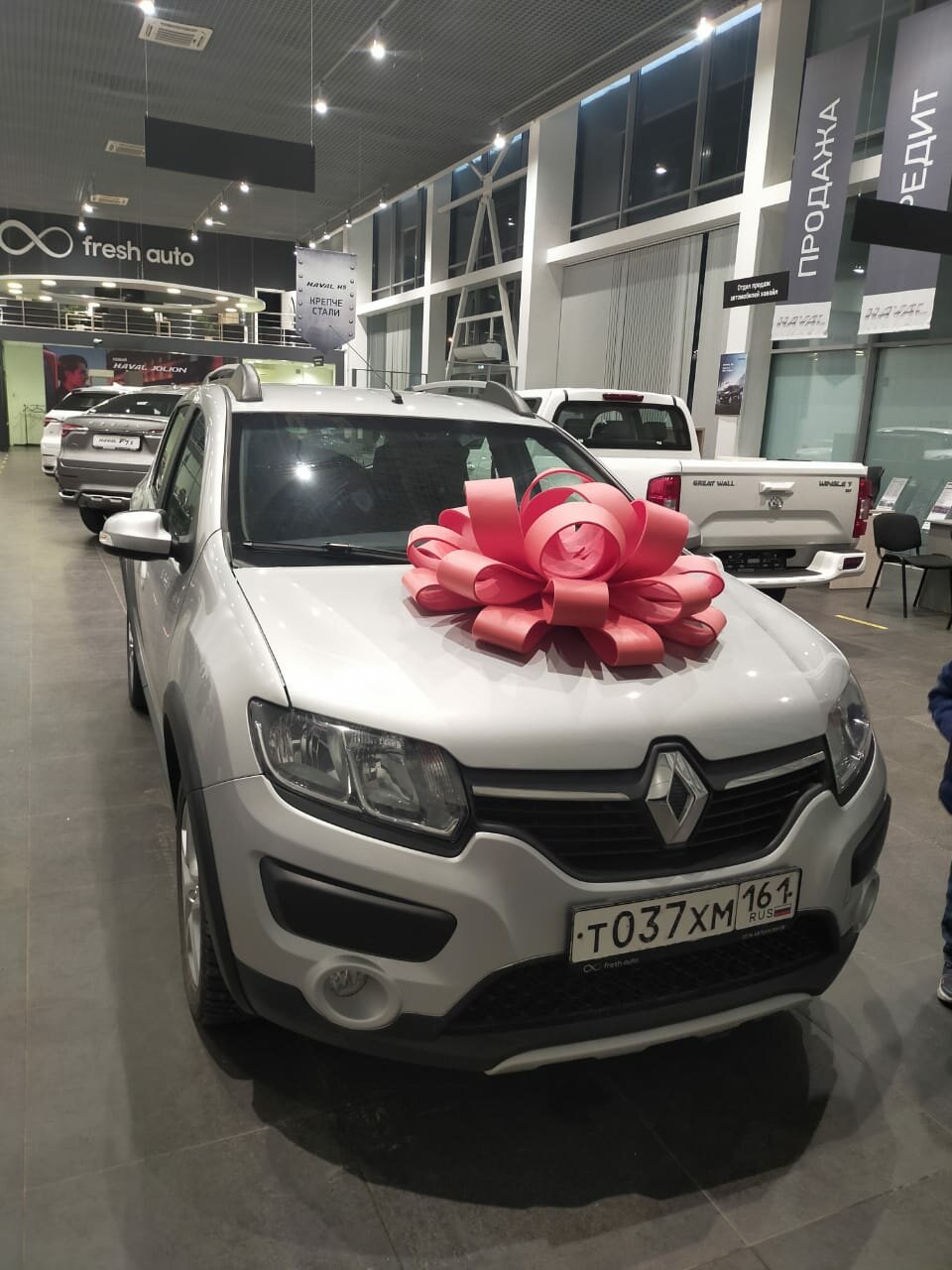Купили в салоне Хавал новую машину. Нам очень повезло, что в момент внесения предоплаты и заключения договора на ожидание машины какой-то мужчина отказался от своей машины и она оказалась такой комплектации которая нам нужна но другого цвета, оказалось что цвет бомбический. В итоге приехали заключить договор и ждать а спустя несколько часов выехали на новой машине. Свою сдали в трейд ин по вполне рыночной цене, оформили кредит в салоне с хорошим процентом 10,4 ( если я не ошибаюсь) для примера сбербанк с официальной зп в банке дает все 14% Единственное что подпортило впечатление это то, что когда муж попросил внести его как собственника в документы менеджер сказал что это необязательно и отправил на горячую линию. На горячей линии сказали что это работа менеджера. После долгого пинг-понга между службой поддержки и менеджером салона муж просто оставил жалобу на оф сайте хавал, с ним связались и спустя неделю внесли его как собственника в электронный птс.