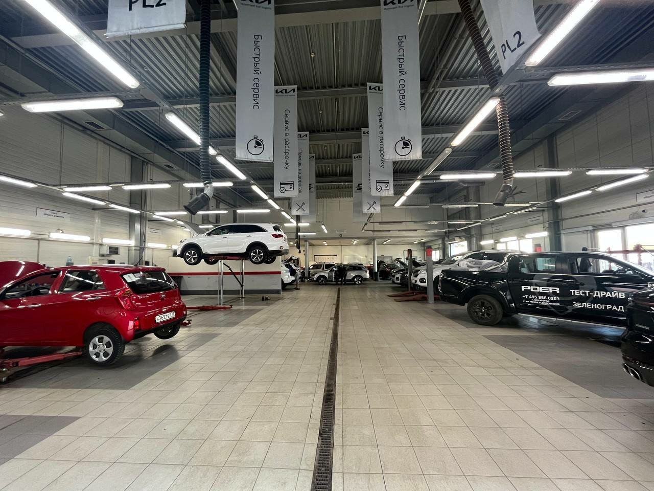Помимо продажи автомобилей, Киа центр Зеленоград предоставляет полный спектр сервисных услуг: сервисное обслуживание, кузовной ремонт, шиномонтаж, ремонт двигателя, АКПП, рулевых реек, генераторов, форсунок, ГБЦ, а также замену масла, ГРМ, тонировку стекол, шумоизоляцию, установку фаркопа и антикоррозийную обработку. Дополнительно доступны мойка, заправка автокондиционеров и другие услуги.