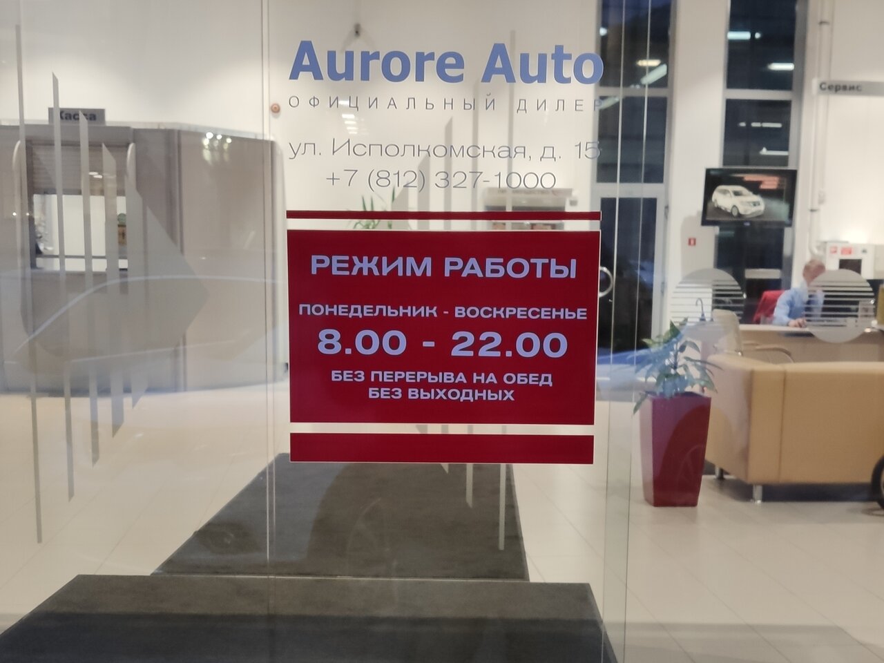 Прекрасный персонал. Хорошее местоположение. По сравнению со всеми дилерами Ниссан в СПб Аврора самые лучшие.