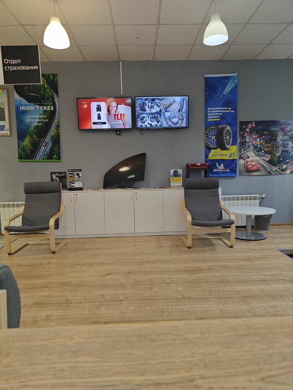 Шиномонтаж на высоте, в смысле спецы молодцы, датчики менял давления. Всё сфотографировали, поставили, всё работает. Колодки менял вкруг, тоже всё отлично. Можно пользовать сервис. Зона ожидания есть, ТВ смотри, кофе пей или смотри по камерам как делают и что с твоим авто.