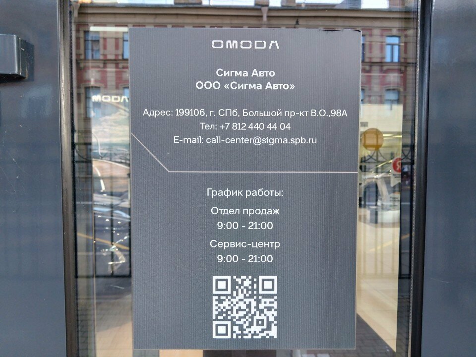 Информация о автосалоне Omoda, Сигма Авто актуализирована в ноябре 2025 года: