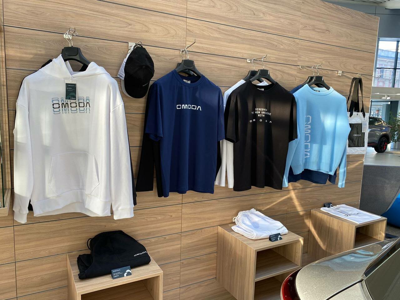 отличный салон, омода разных цветов в наличии. парковка бесплатная, места всегда есть. и даже в индивидуальной оклейке можно заказать. на втором этаже вкусный кофе и тортики.