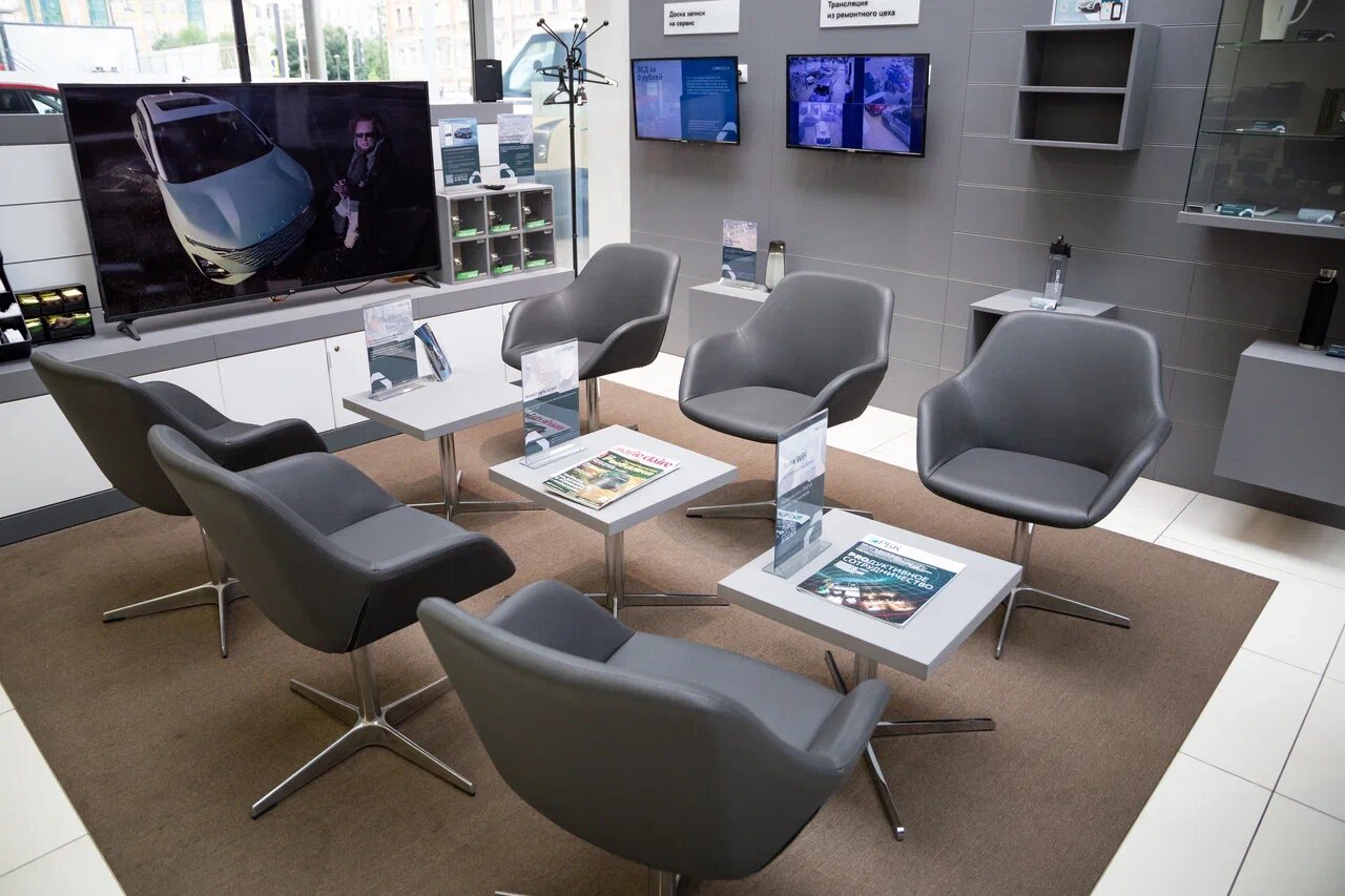 - Современный диджитал-салон с тактильными мониторами.
