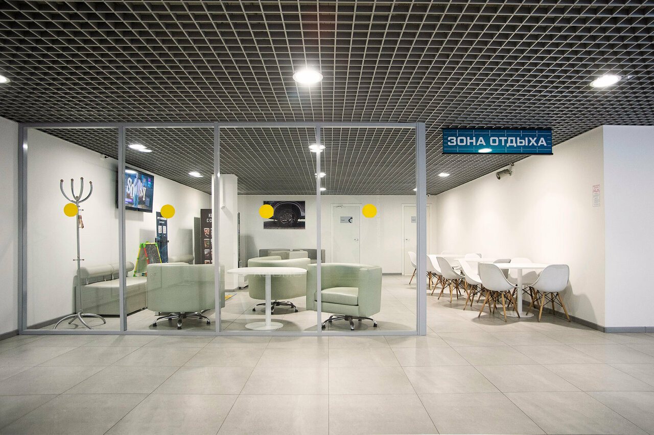 Хороший автосалон, есть кафе, работает автомойка, в помещении приятно, чисто , приветливый персонал.