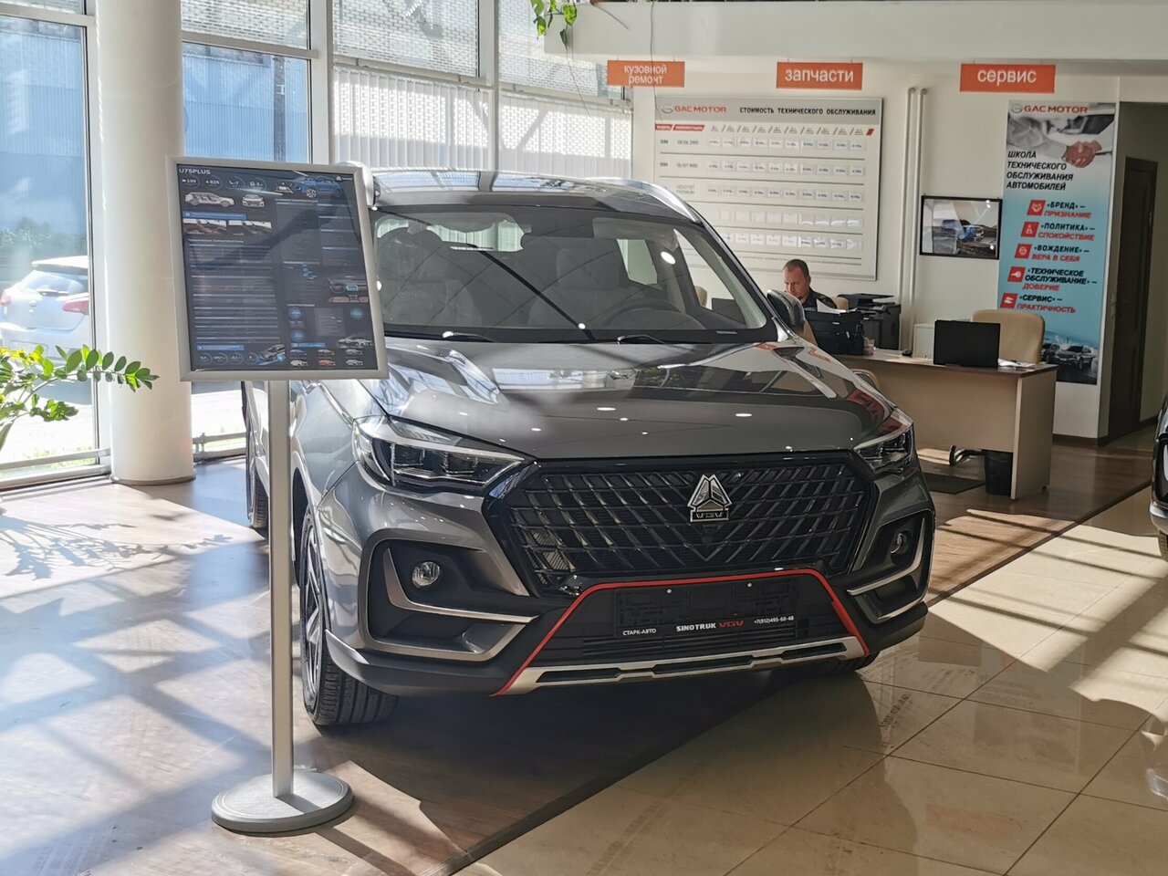 Ну пока не очень честно скажу был а этом автосалоне 6 января на двери был график ,что работаю они в этот предпраздничный день до 20.00 я был около 19.00 было уже закрыто , сотрудников не было от слова совсем. Ну думаю ладно хотя бы через красивое витражное стекло гляну авто есть ли в шоуруме? Как оказалось и в шоуруме и на ближайшей парковки салона я экземпляра авто VGV не увидел. Для всех интересующихся салон занимается продажей ещё одной китайской марки GAG этих машин было Аш по две штуки некоторых моделей а вот тот авто , VGV не одного по край мере в тот день. Хотелось бы как нибудь попасть и посмотреть всё-таки на интересующий меня автомобиль. Хотя может после отзыва мне специально ничего и не покажут