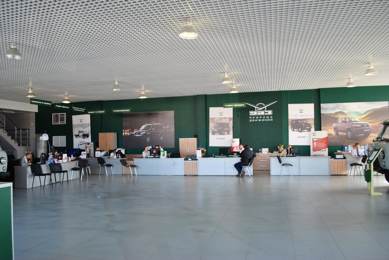 Хороший автосалон, по крайней мере торговый зал и отдел продаж. Руководитель отдела продаж грамотно и доходчиво представляет продукцию УАЗа. До отдела технического обслуживания не доходил.