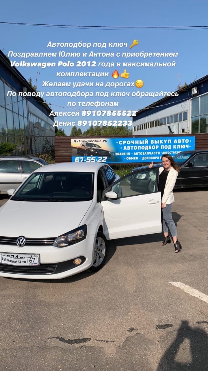 Спасибо вам, команда АВТОЭКСПЕРТ СМОЛЕНСК Когда решаешься на приобретение автомобиля, особенно, если не до конца уверен в выборе, многие вопросы вызывают у тебя легкую панику и когда нужен грамотный совет, которому можно доверять — в этом случае теперь я с полной уверенностью могу рекомендовать ребят! Профессионализм в подборе автомобиля, внимательное отношение к клиенту, дополнительные консультации по очень разным вопросам, грамотные советы по юридическим моментам и сопровождение сделки, бережное отношение к автомобилю! От души благодарна Алексею и всей команде АВТОЭКСПЕРТ СМОЛЕНСК за подбор моего автомобиля, за то, что порой вы лучше меня знали, что мне нужно и оказались правы! Желаю вашему бизнесу процветания и новых довольных клиентов!