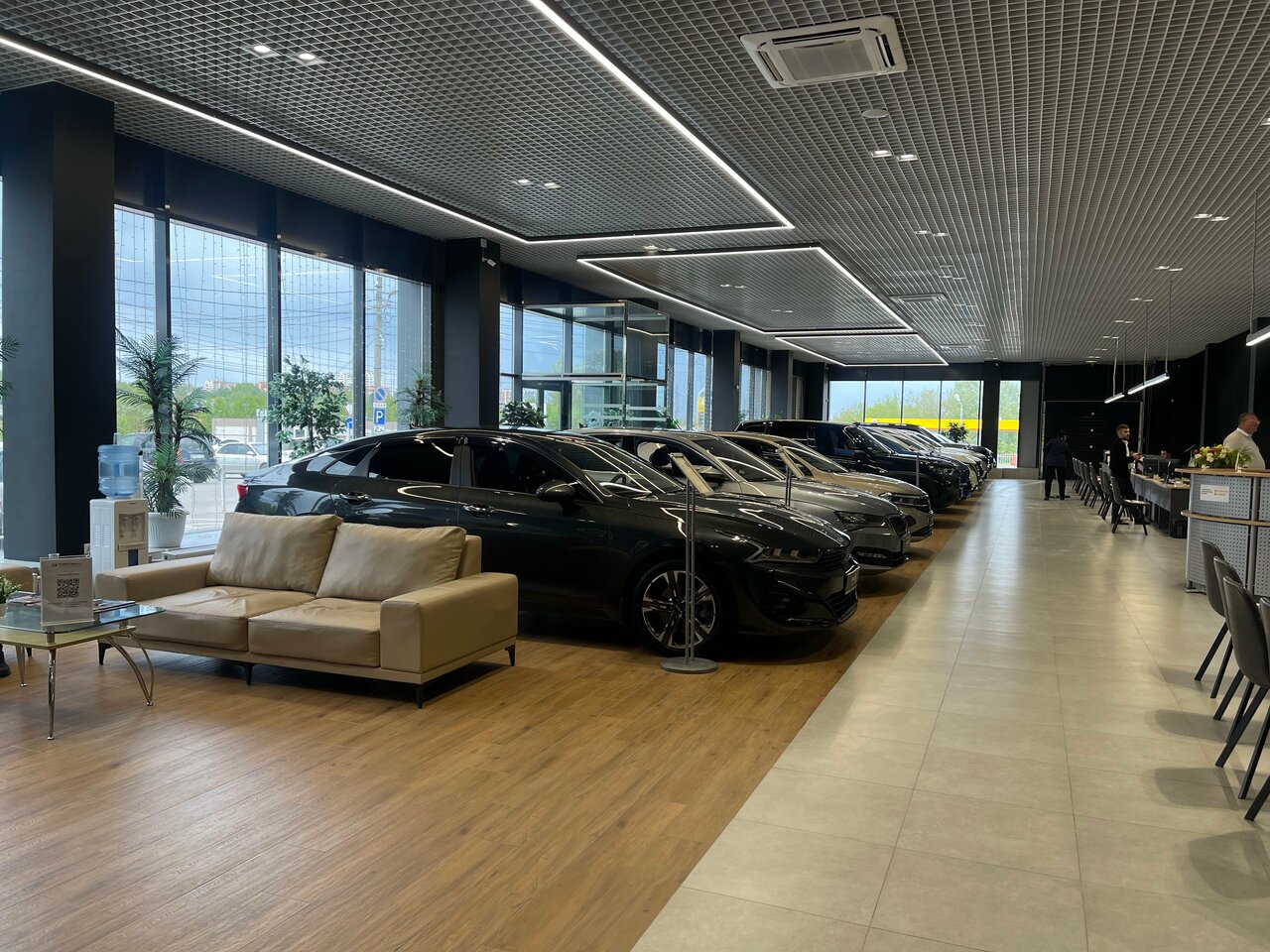 Профессиональные консультанты помогут подобрать идеальный автомобиль, организуют тест-драйв и оформят все документы. В салоне создана удобная атмосфера для клиентов, включая зону кафе.