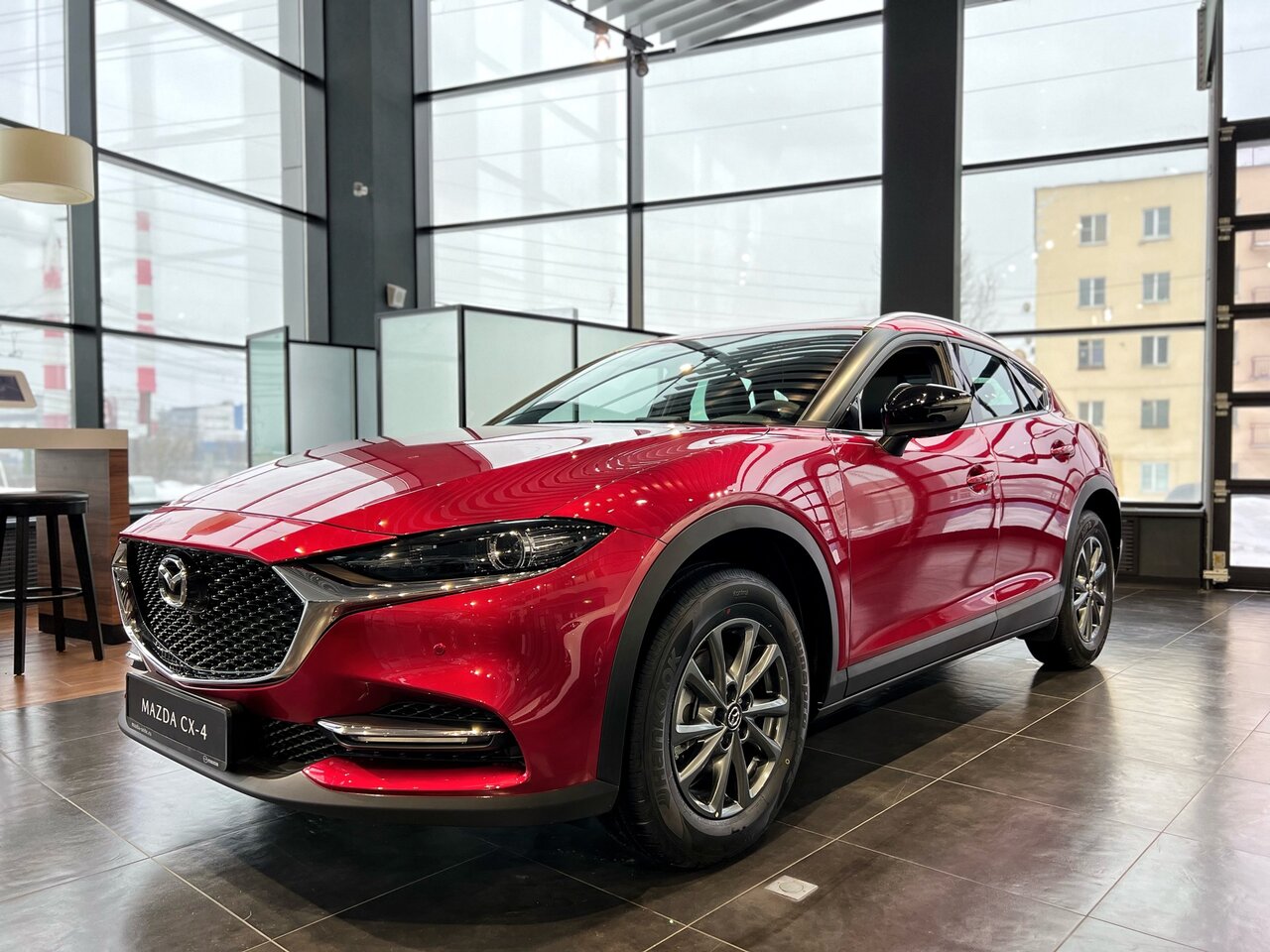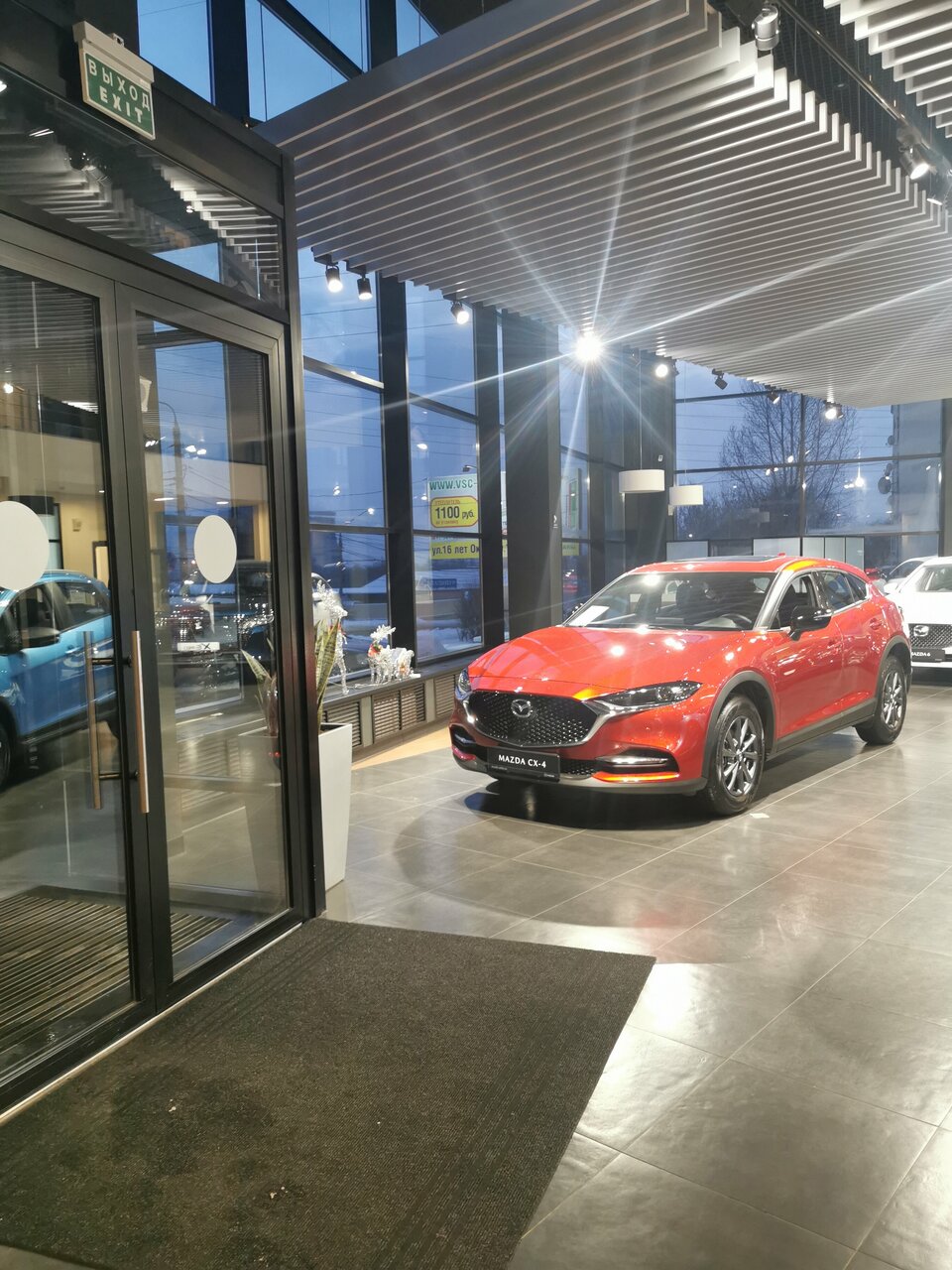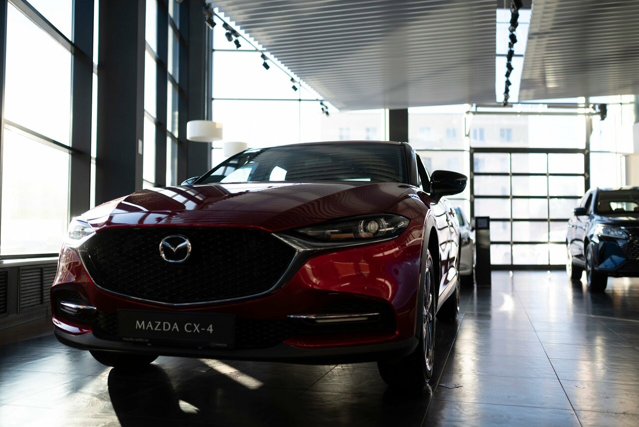 Красивый шоурум, понравилась новая модель MAZDA CX-4. Менеджер подробно рассказал о характеристиках автомобиля и возможности его приобретения в трейдин