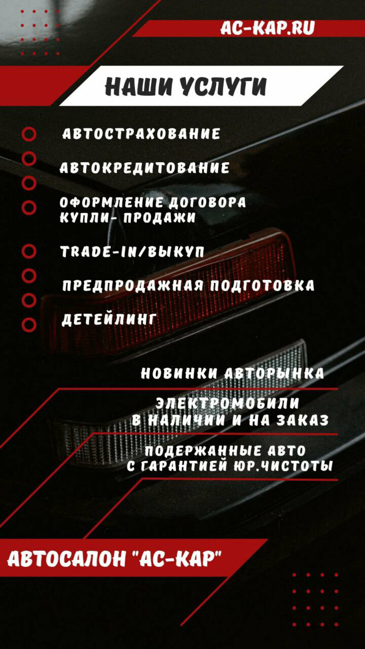 «Ас-Кар» гарантирует качественное послепродажное обслуживание и индивидуальный подход к каждому клиенту. Режим работы: пн-пт с 09:00 до 18:00, сб с 09:00 до 16:00. Контакты: 8 (800) 101-66-99, +7 (4852) 74-00-10, +7 (903) 824-66-99. Подробнее на сайте: http://ac-kap.ru/.