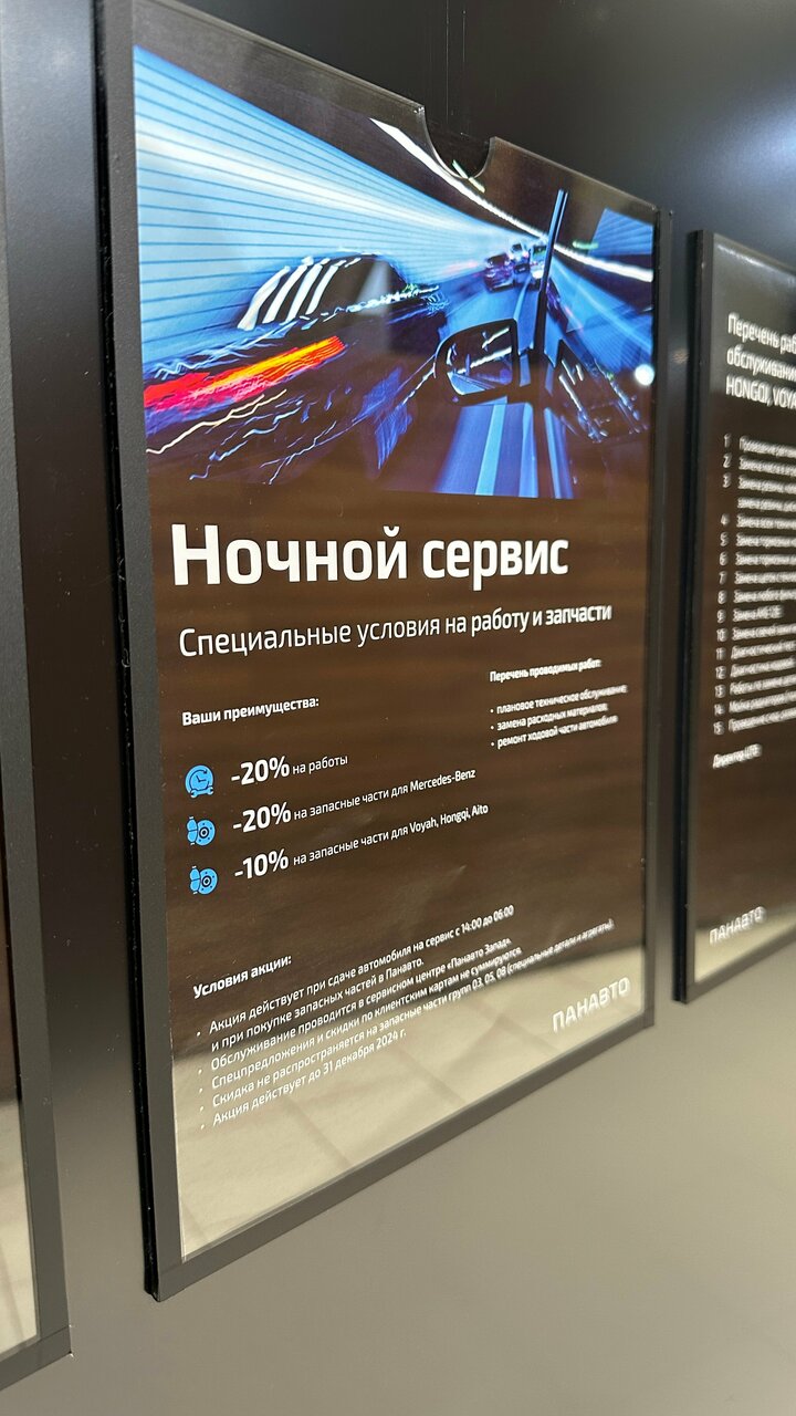 Панавто Электро обеспечивает комфортные условия для выбора и оформления покупки, а также предлагает профессиональное сервисное обслуживание. В перечень услуг входят кузовной ремонт, покраска, тонировка стекол, полировка, ремонт фар и стартеров, чистка форсунок, шиномонтаж, развал-схождение, антикоррозийная обработка и мойка. Для удобства клиентов на территории салона работает кафе.